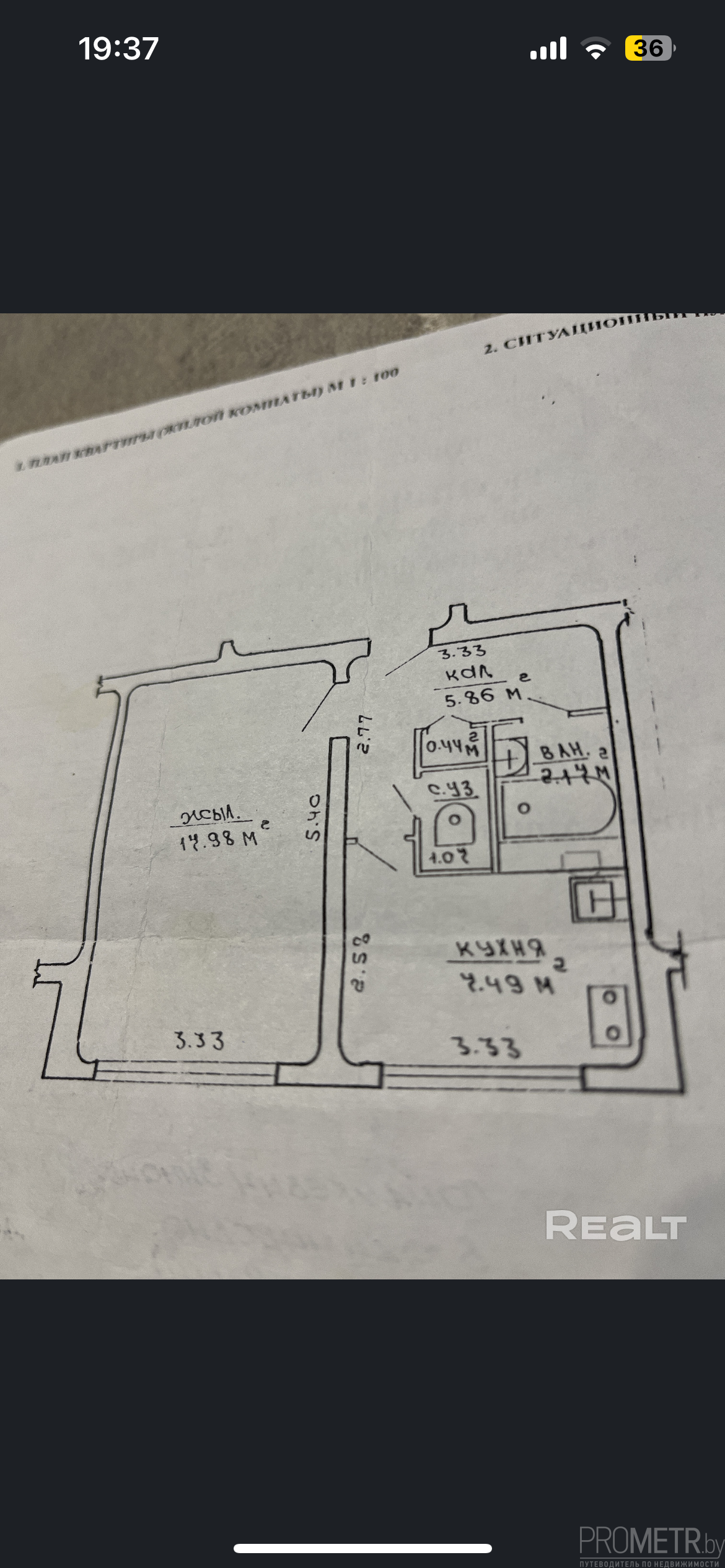 Продажа 1-комнатной квартиры, 35м2, 2 этаж