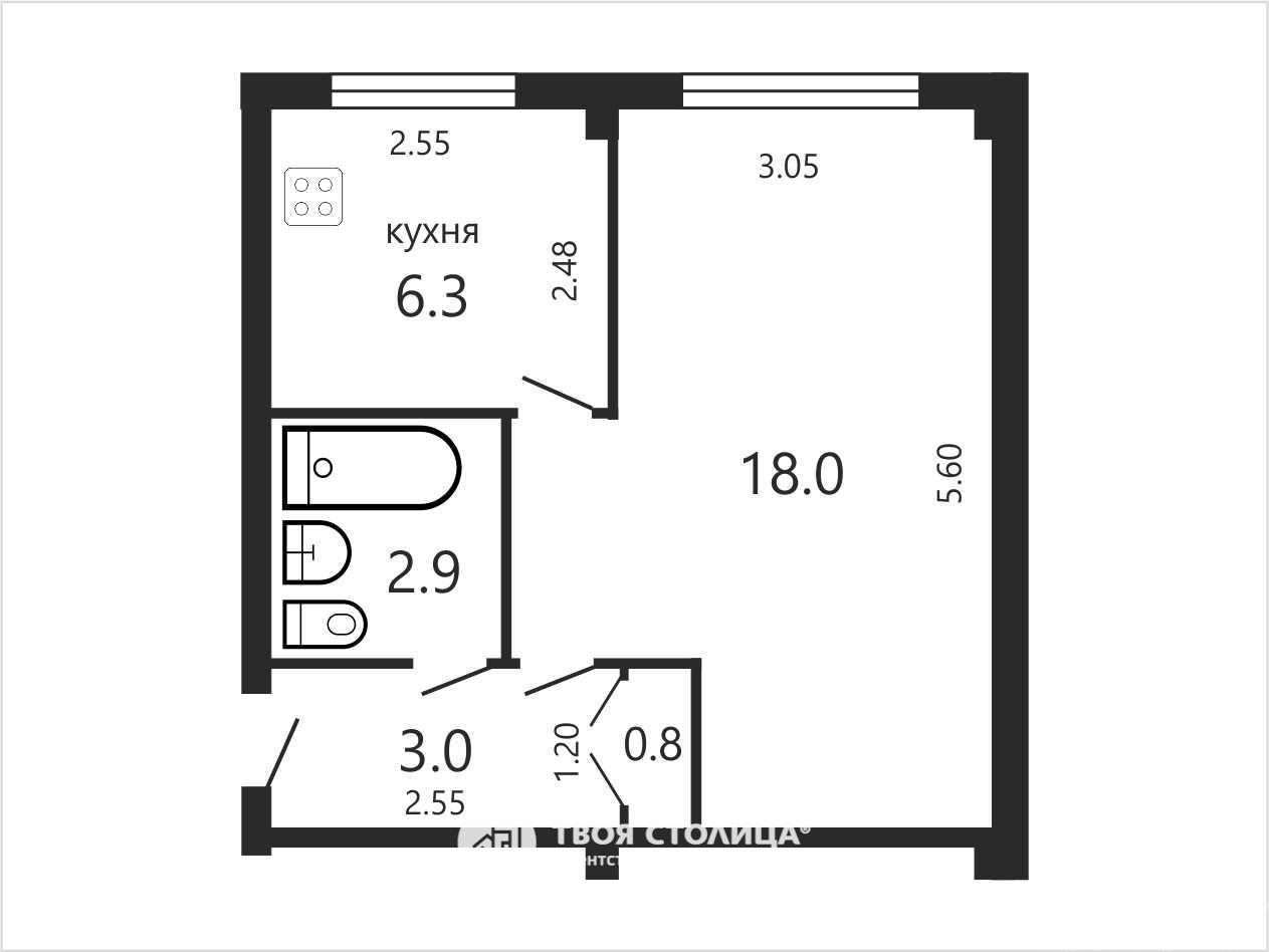 Этаж: 1/5, нет балкона Общая площадь: 31. Жилая площадь: 18. Площадь кухни: 6.3. Высота потолка: 2.5.
