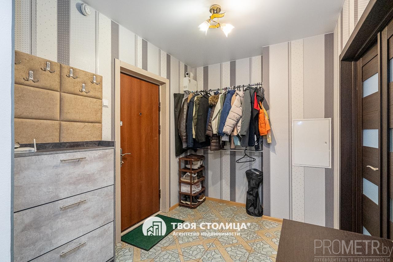 Квартира находится на 11 этаже 19-этажного панельного дома 2016 года постройки, что гарантирует надежность и современный подход к строительству. Общая площадь составляет 42.6 кв.м ( по СНБ 45.1) , жилая – 18 кв.м, а просторная кухня – 9.3 кв.м, позволяя реализовать любые кулинарные фантазии. Высота потолков 2.64 м создает ощущение свободы и дополнительного пространства.