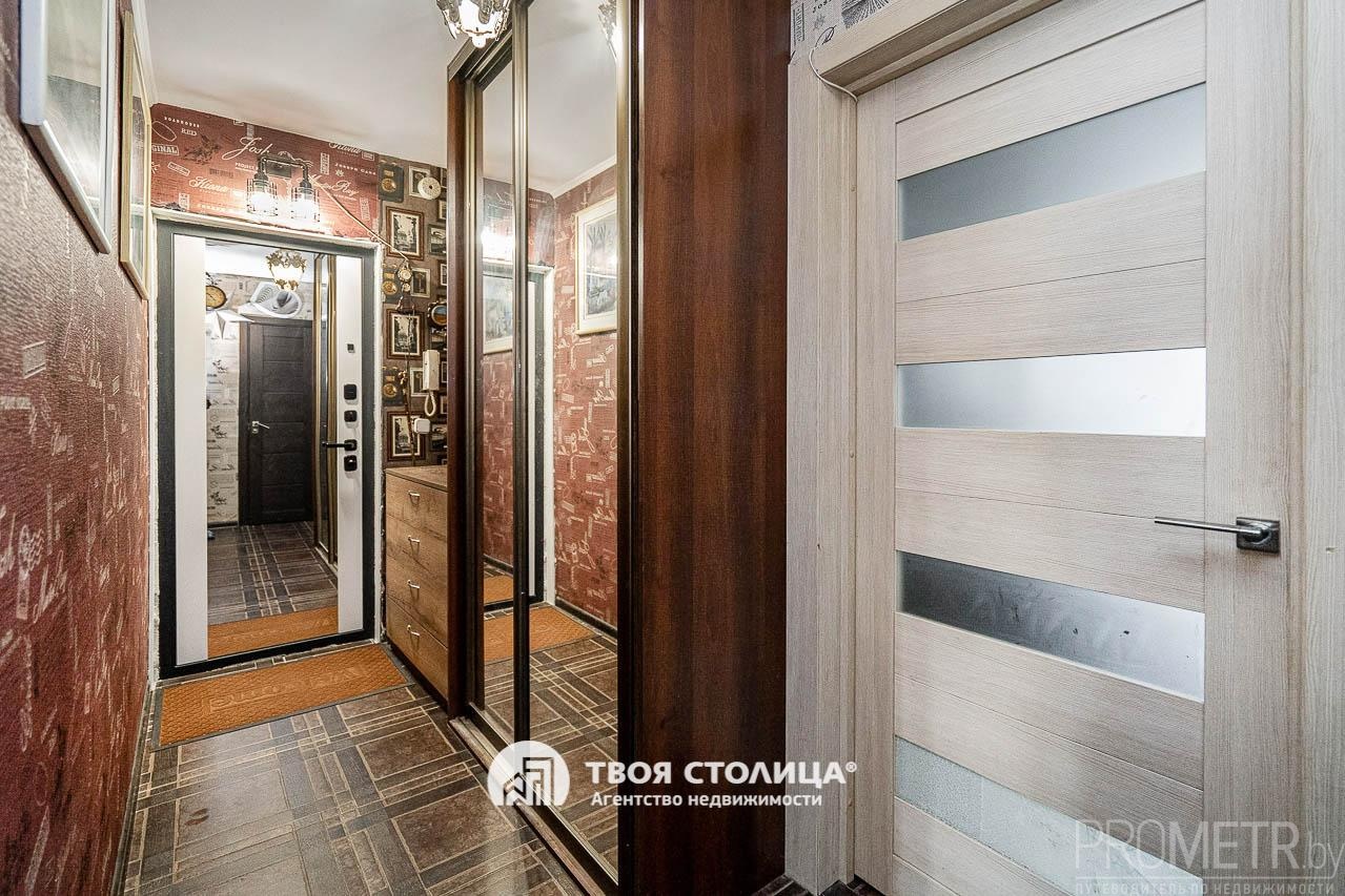 В квартире стеклопакеты. 2 шкафа-купе. Полы- плитка, линолиум. Лоджия застеклена. Навесная кухня. металлическая входная дверь.