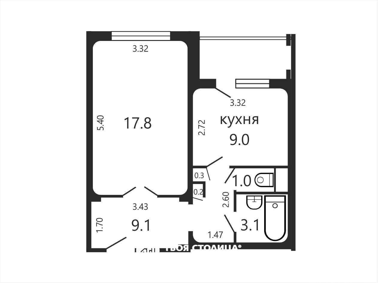 ✔ Жилая площадь: 17,8 м²