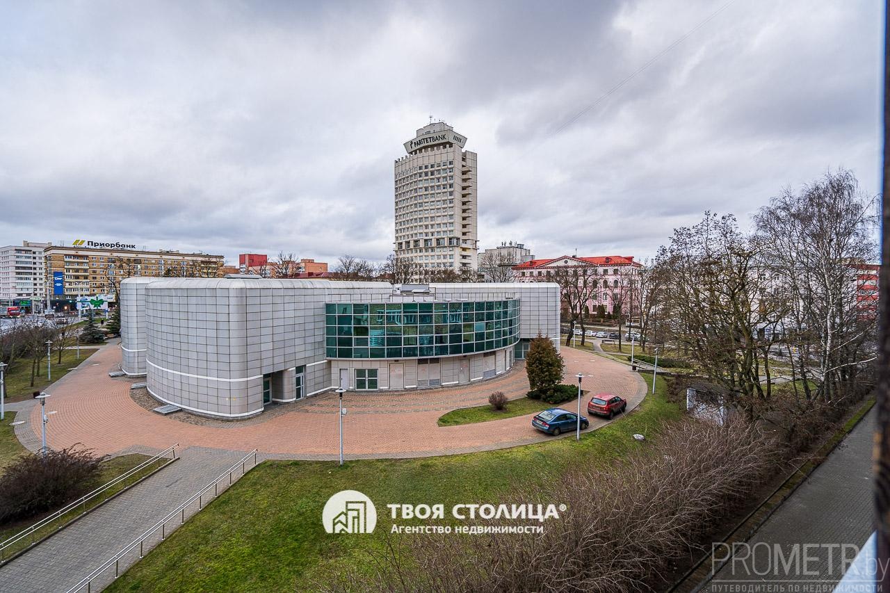 В комнате два широких окна, благодаря которым квартира наполнена дневным светом с утра до вечера. Из окон открывается вид на Юбилейную площадь и зелёный сквер с вековыми деревьями. Вечером – мягкие закаты, днём – ощущение пространства и воздуха. Такое соседство с природой в центре встречается нечасто.