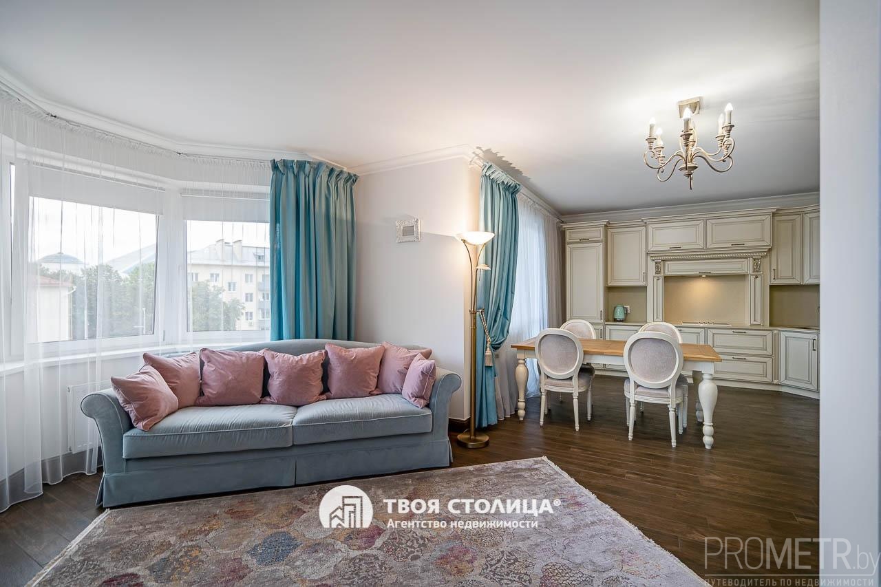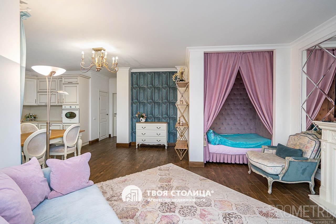Квартира полностью укомплектована мебелью и техникой от лучших мировых производителей. Мягкая мебель от компании FURMAN. Встроенная кухня KUCHENBERG оборудована техникой фирмы SMEG. Продуманная система хранения в гардеробной. Просторная ванная комната с душевой. Окна квартиры выходят на восточную сторону, обеспечивая Вам лучи восходящего солнца. Высота помещения 2,7 м. Общая площадь по СНБ 56,2 кв.м. Общая площадь 53,3 кв.м. Жилая площадь 24,3 кв.м.