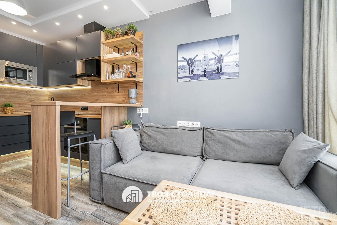 Стильный дизайн, отделка качественными современными материалами. Квартира полностью укомплектована бытовой техникой и мебелью.