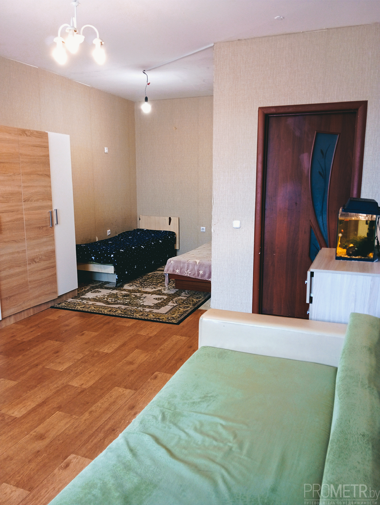 Продается просторная 1-комнатная квартира, общей площадью по СНБ 46.2 кв.м. квартира, 6 этаж 9-ти этажного дома, очень теплая, не угловая, имеется просторная лоджия 6.7 кв.м. с выходом из кухни. Лифт большой грузовой, чистый подъезд, хорошие соседи. На лестничной площадке имеется роллет для хранения вещей.Зелёная зона возле дома,детские площадки, автомобильная стоянка всегда в доступе. Артезианская скважина, вкусная вода.Квартира повышенной комфортности с индивидуальным отоплением. Газовое отопление, постоянно горячая вода, отопление включается по необходимости.Дом монолитный, с газосиликатными перегородками, можно убрать стены и сделать одну большую студию.Хорошее транспортное сообщение, можно добраться за 20 мин. до центра столицы, до станции метро Уручье общественным транспортом, который ходит с интервалом 5-8 мин. В шаговой доступности остановка, школа,детские сады, поликлиника, торговые ряды, Белмаркет, Евроопт, заправка Белоруснефть.<br />