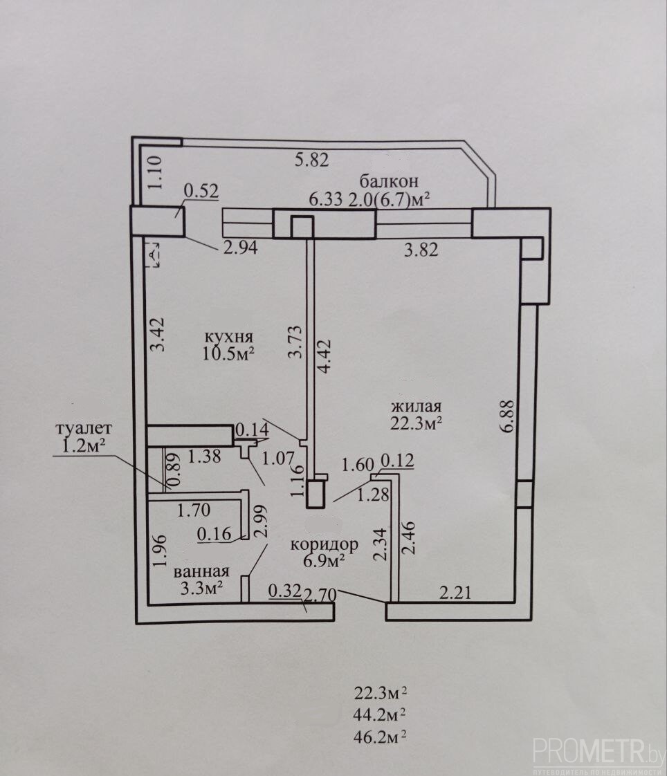 Площадь: 44.2 / 22.3 / 10.5 м2