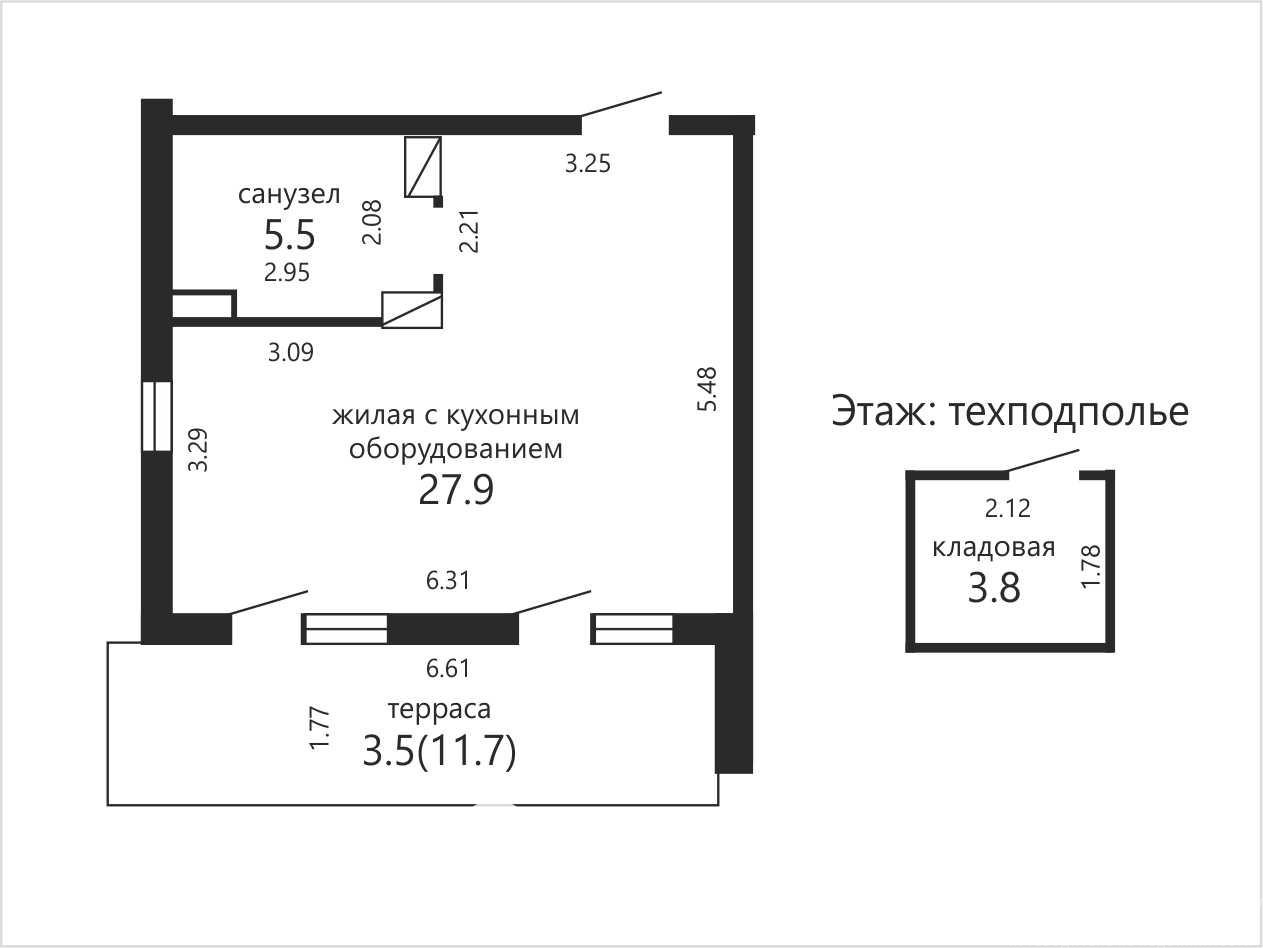 Свободная планировка, терраса, высота потолков 2,71 м.