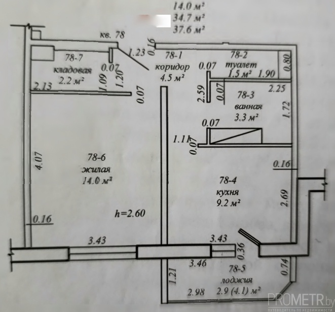 Площадь: 37.6 / 14.0 / 9.2 м2