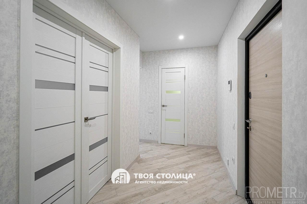 При обустройстве квартиры делался акцент на комфорт во всём. Двери: входная - металлическая, межкомнатные - экошпон. В оконных проёмах установлены стеклопакеты с профилем из ПВХ, в том числе остекление лоджии. Натяжные потолки со встроенными и подвесными осветительными приборами. Напольные покрытия: ламинат.