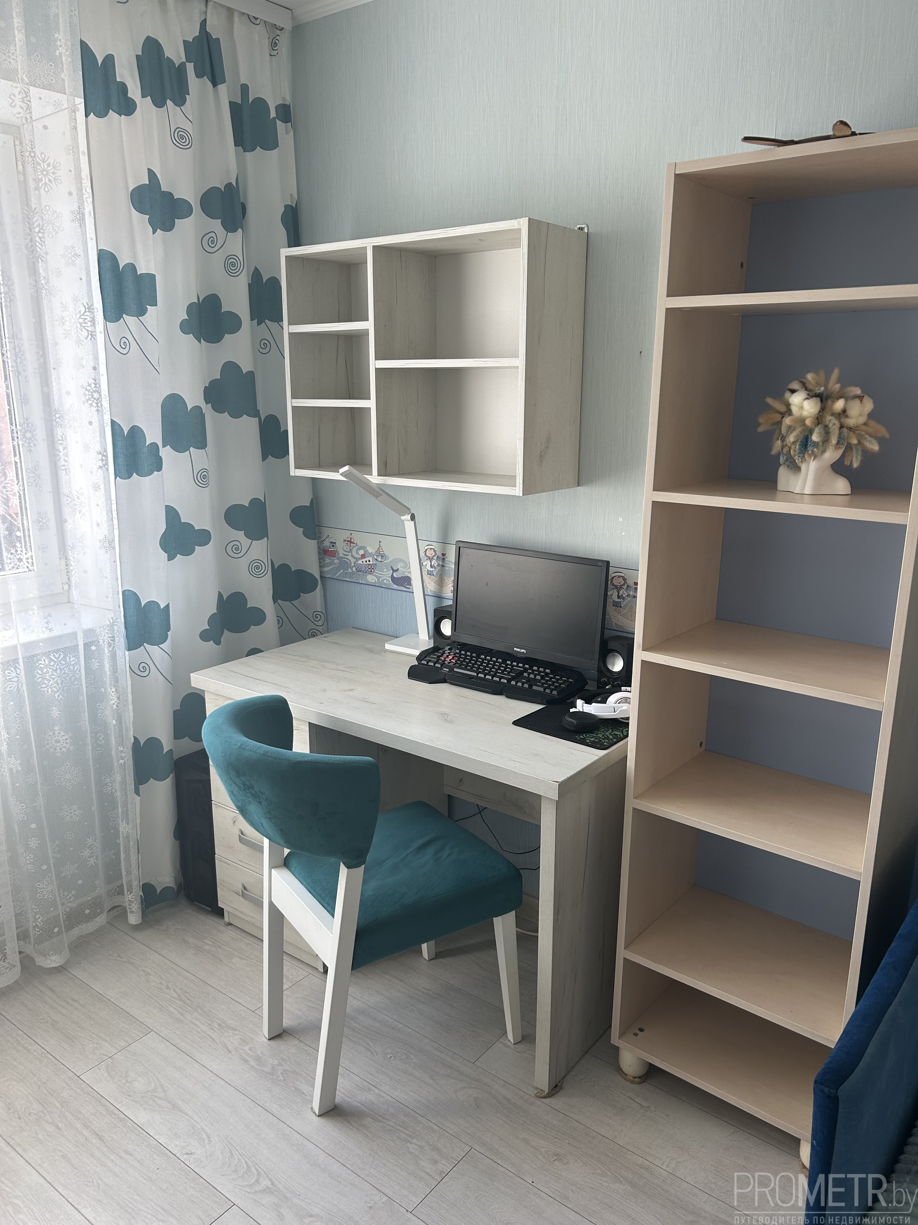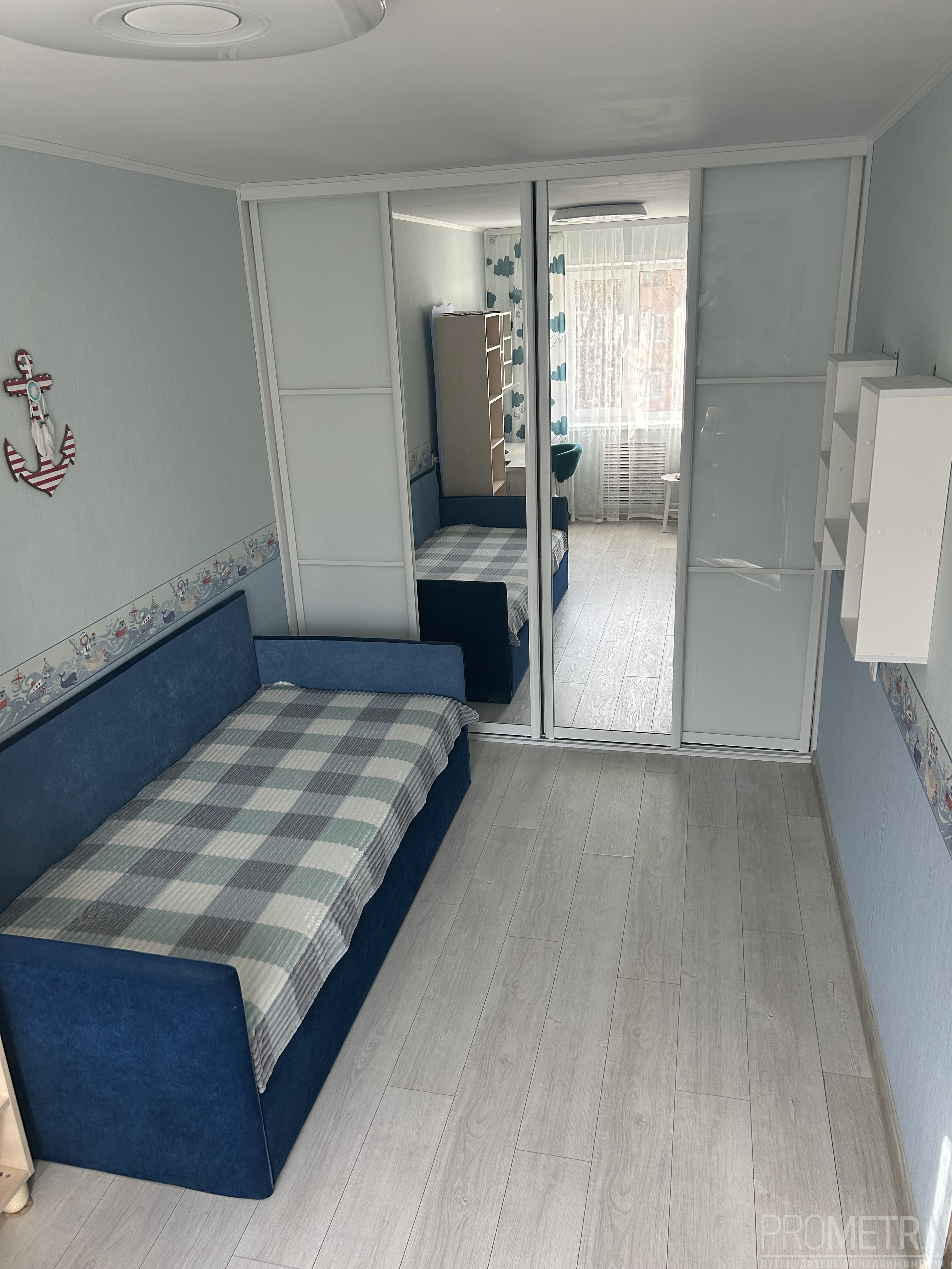 - Вторая комната- детская (спальня), 14 кв., есть всё необходимое, плюс большой шкаф-купе (проектировался как гардеробная, очень функциональный).