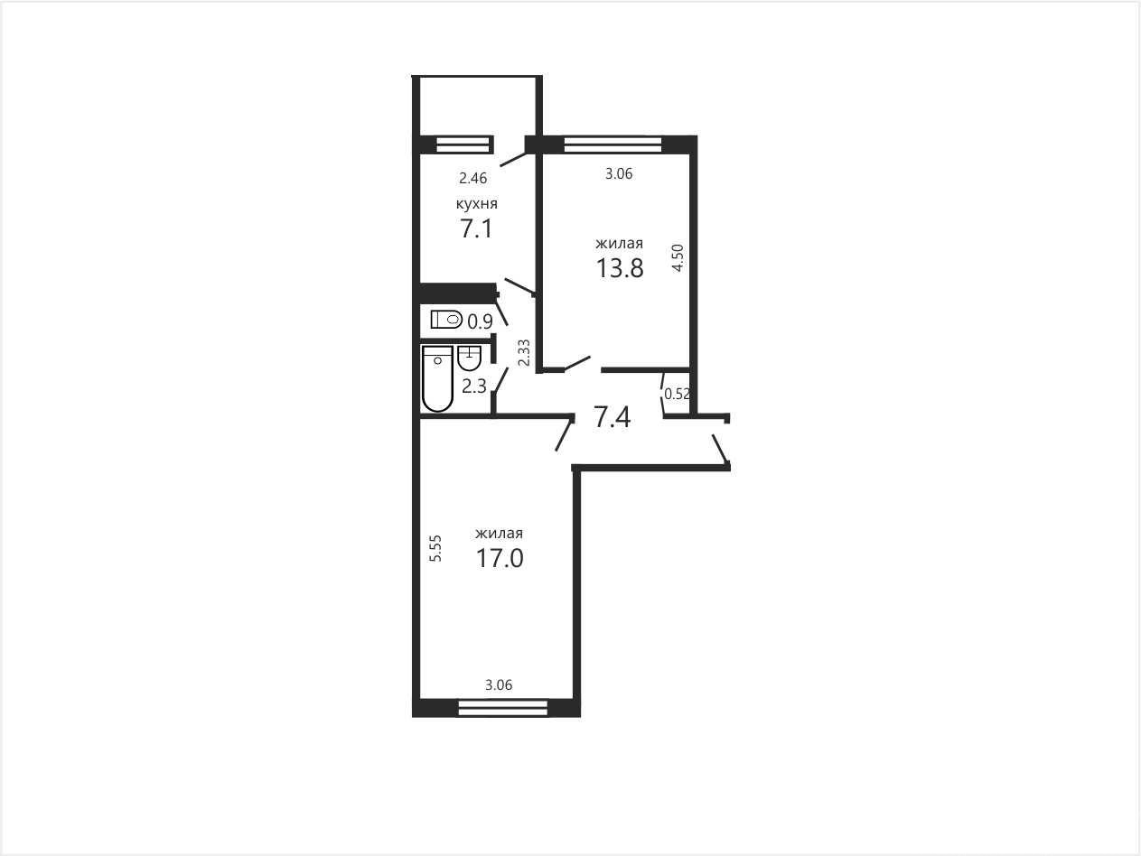 Это обеспечивает гибкость: можно сдавать как двухкомнатную квартиру, так и по комнатам — в зависимости от стратегии инвестирования.
