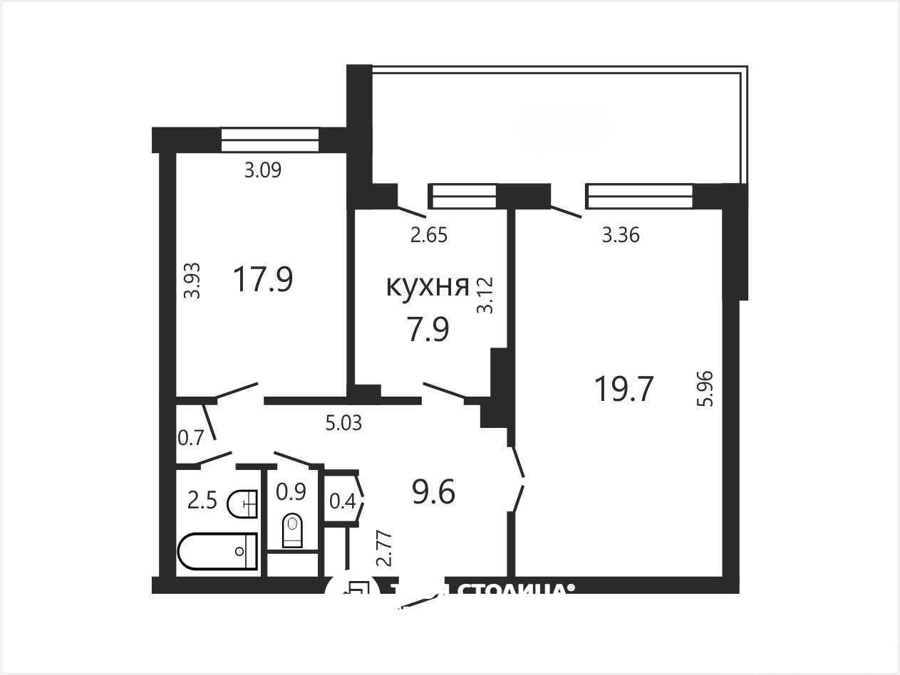 Рациональное решение — изолированные комнаты, кухня по центру, раздельный санузел, просторная прихожая, большая застеклённая лоджия.