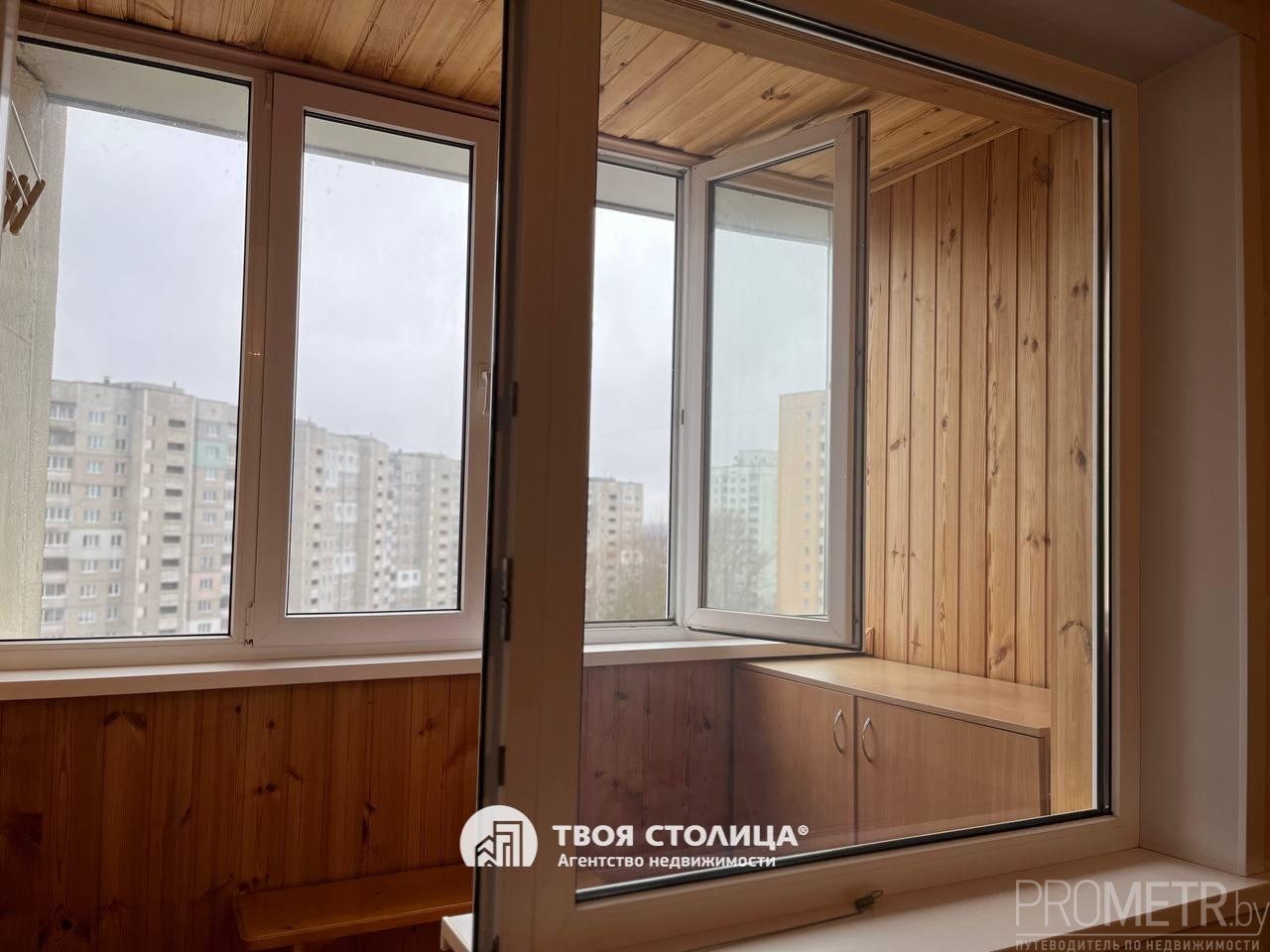Квартира в аккуратном состоянии. Установлены стеклопакеты ПВХ, лоджия застеклена. Напольное покрытие – линолеум. Межкомнатные двери из массива дерева. В ванной плитка. Установлены приборы учёта воды, домофон. Вся мебель остается. Ухоженная придомовая территория.