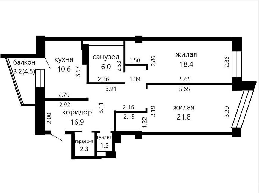 Нестандартная планировка, просторные комнаты и кухня с выходом на балкон, два санузла. Окна - стеклопакеты, пол - линолеум, натяжные потолки.
