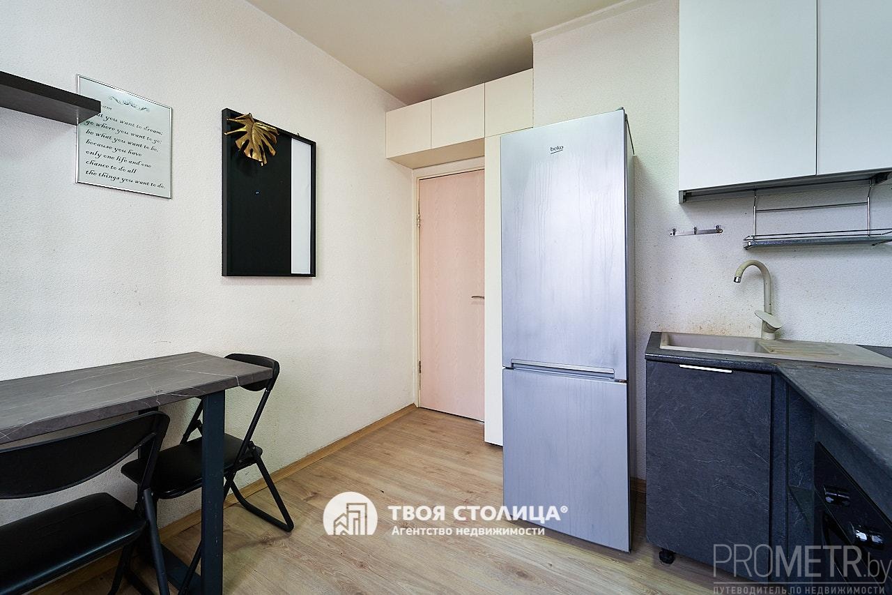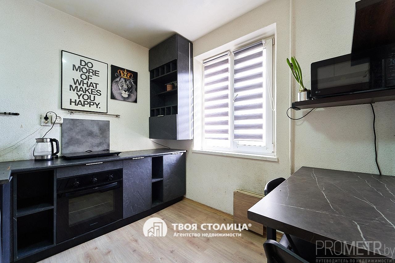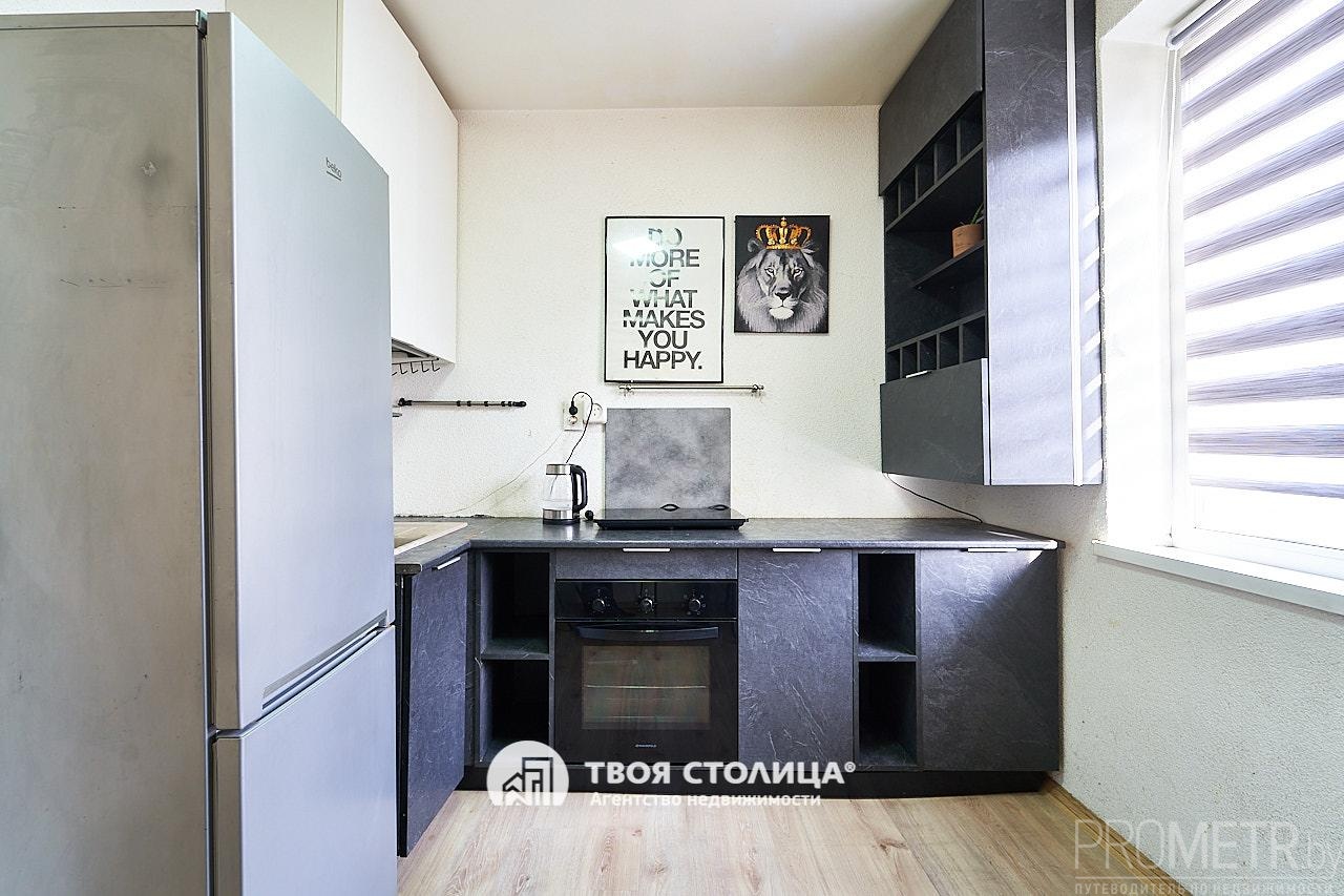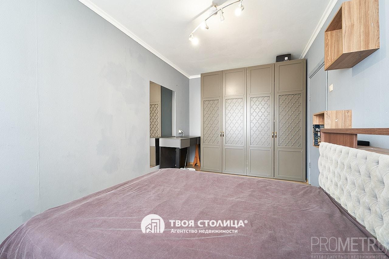 Квартира продаётся без мебели. Кухня оборудована корпусным кухонным гарнитуром. Имеется встроенный шкаф-купе для хранения.