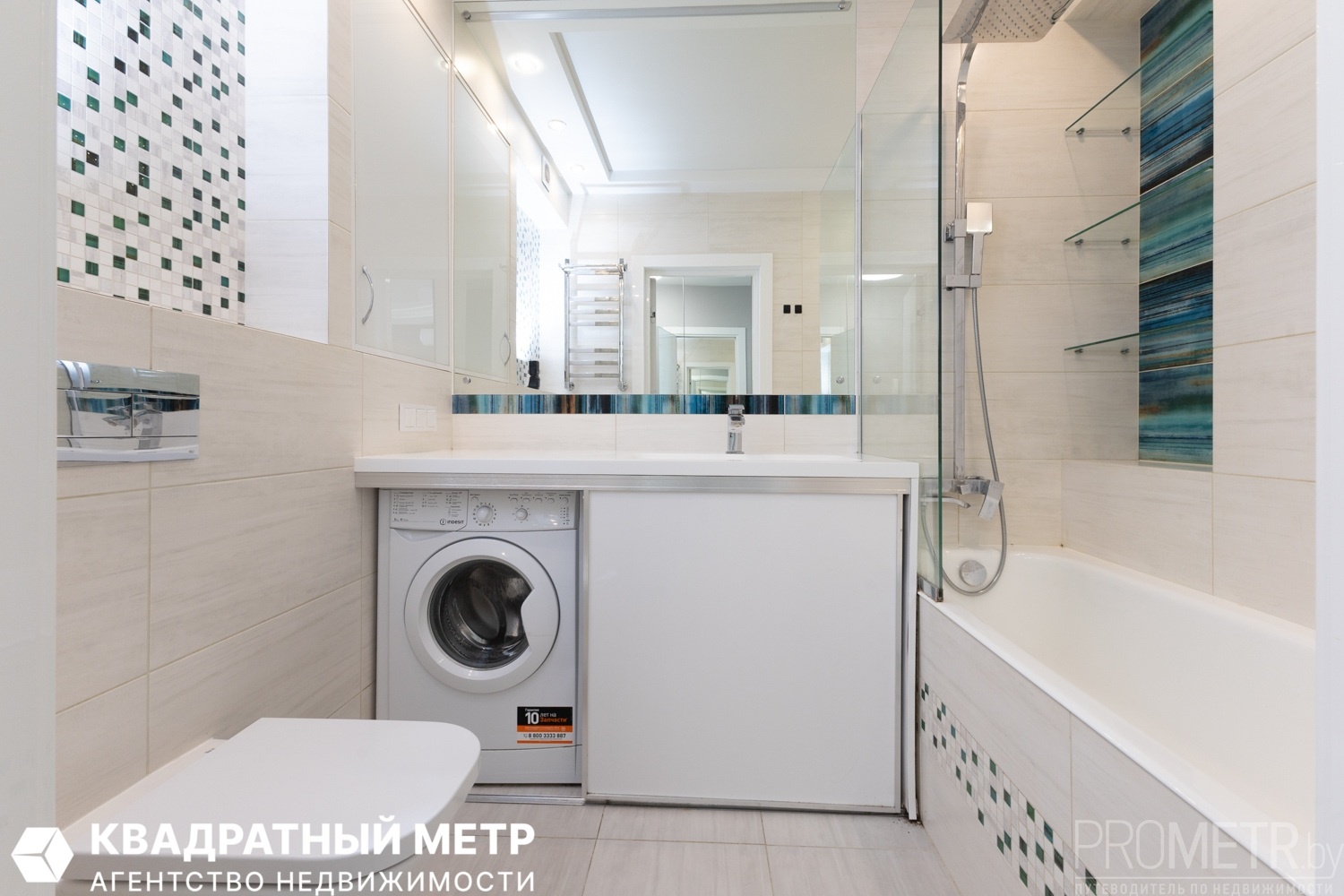 — Ванная комната: стиральная машина, мебель, современная сантехника<br />
