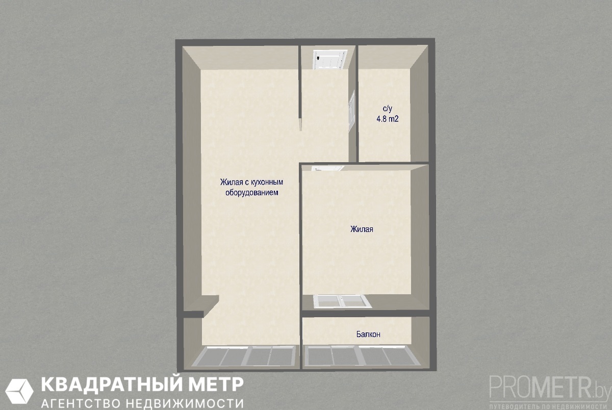▪️ Площадь: 43,4 м2 (2 комнаты)<br />