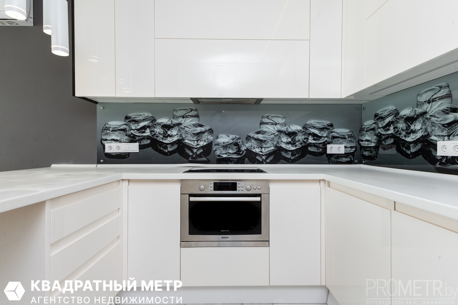 — Встроенная кухня с техникой Bosch (плита, духовой шкаф с СВЧ, посудомоечная машина, холодильник)<br />
