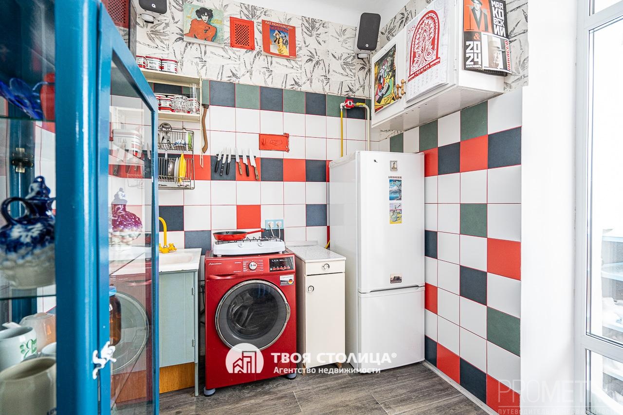 Квартира расположена на 5 этаже 5-этажного кирпичного дома, построенного в 1955 году. Капитальный ремонт дома был выполнен в 2025г. Скатная кровля. Общая площадь квартиры составляет 47.76 кв.м, жилая — 29.47 кв.м, кухня — 6.32 кв.м. Раздельный санузел, просторный коридор, два балкона – в кухне и гостиной. Высота потолков 2.95 м создает ощущение простора и света. Окна выходят в тихий двор на южную сторону, обеспечивая максимальное количество естественного освещения в течение дня.