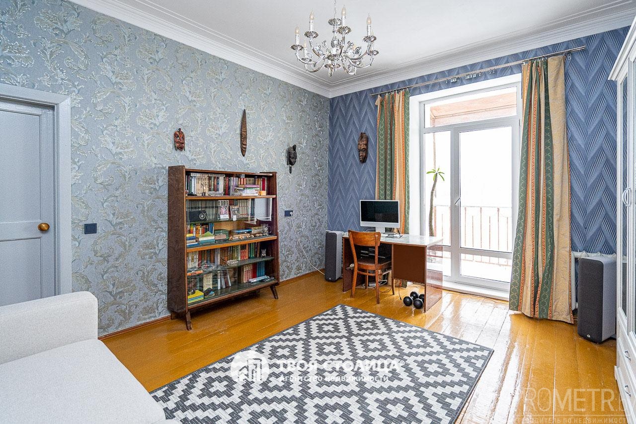 Потолок оштукатурен и покрашен качественной краской, сохранена историческая лепнина. Санузел облицован керамической плиткой, между ванной и кухней сделано оригинальное окошко из стеклоблоков, дающие свет. Установлены приборы учёта воды и газа, домофон. Есть подвальное помещение.
