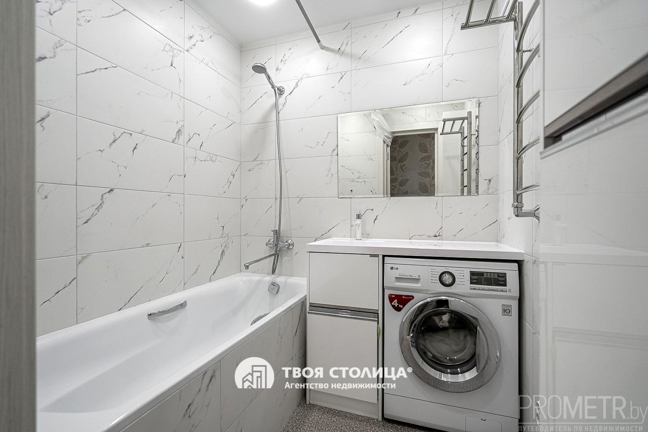 В квартире выполнен отличный ремонт с использованием дорогих материалов. Встроенная кухня с качественной фурнитурой и техникой. В санузлах установлена необходимая сантехническая посуда. Напольное покрытие - керамогранит и кварцвинил. Входная металлическая дверь.