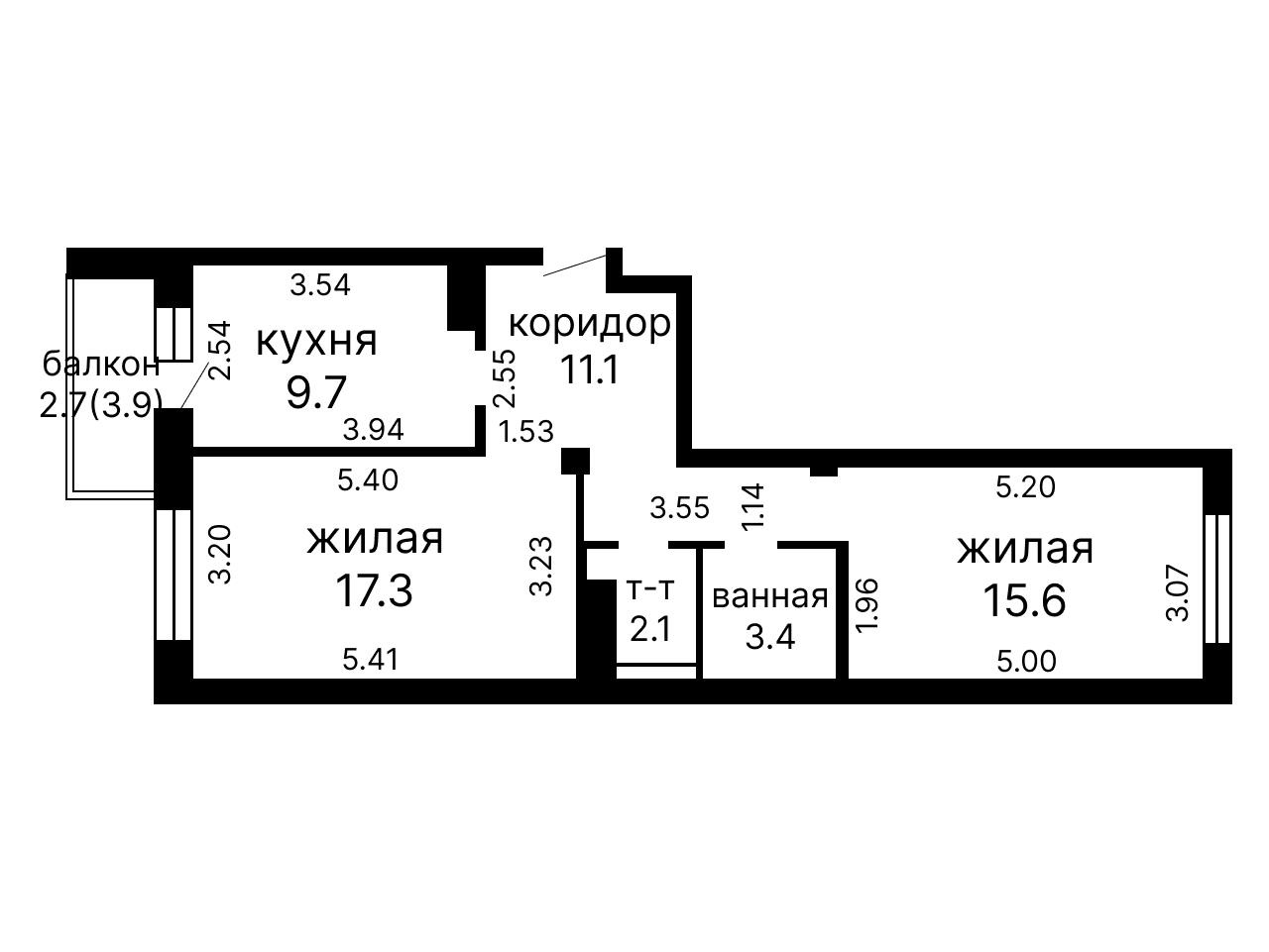 Практичная и продуманная планировка: большая кухня с выходом на балкон, две просторные жилые комнаты, раздельный санузел и вместительный коридор.