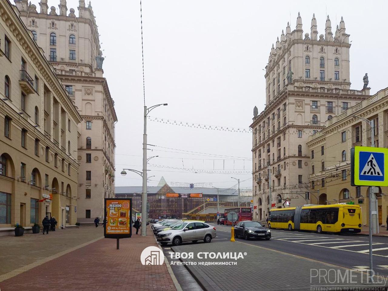 Отличное предложение - просторная двухкомнатная «Сталинка» в самом сердце столицы в комплексе домов "Ворота Минска" на привокзальной площади. Дом является визитной карточкой Столицы.