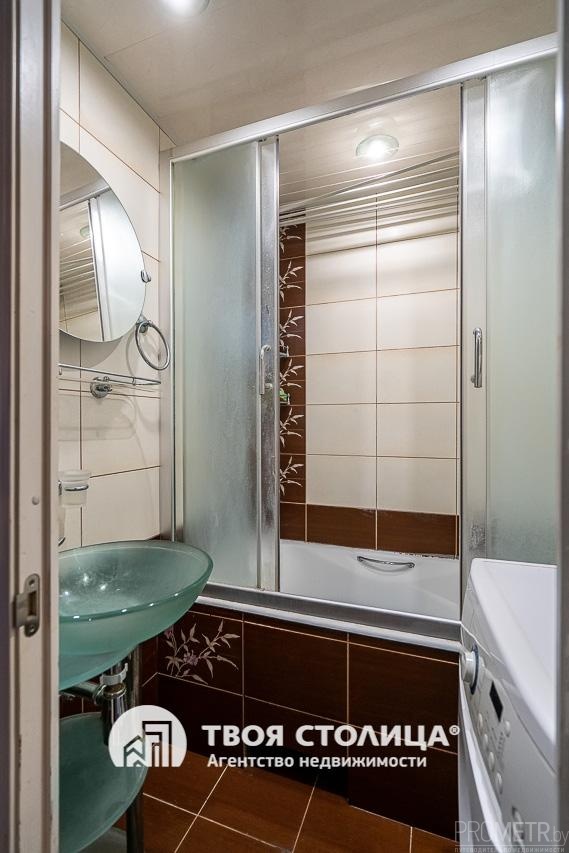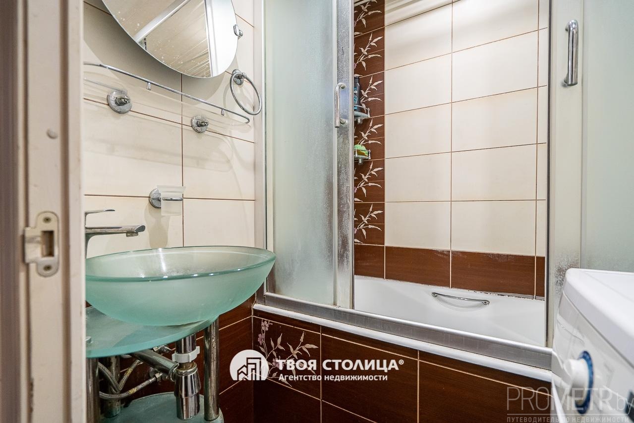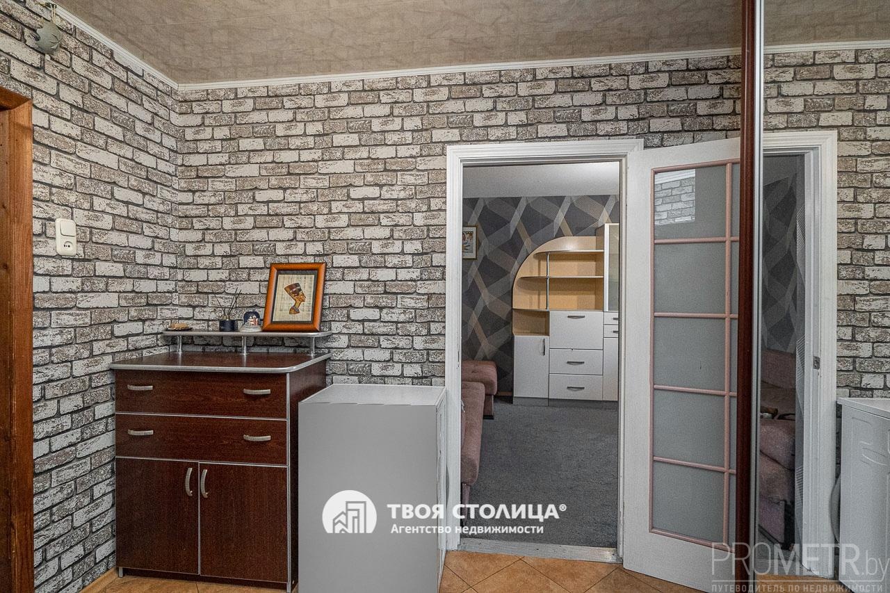 В коридоре установлен вместительный шкаф-купе. Квартира полностью мебелирована. Санузел раздельный, облицован плиткой.
