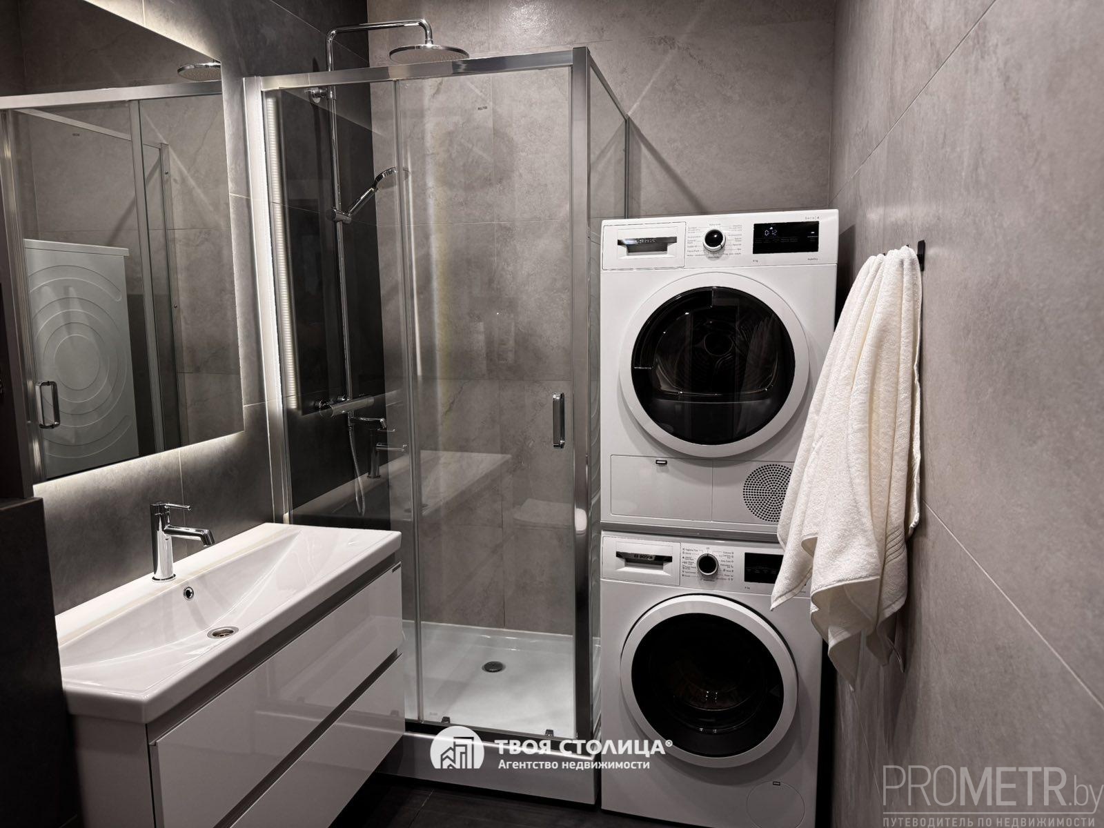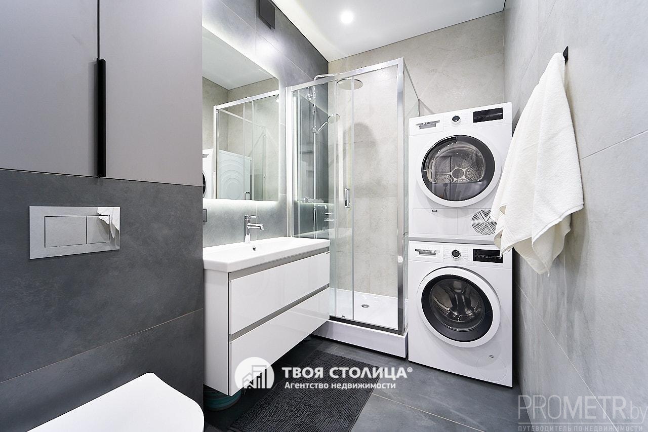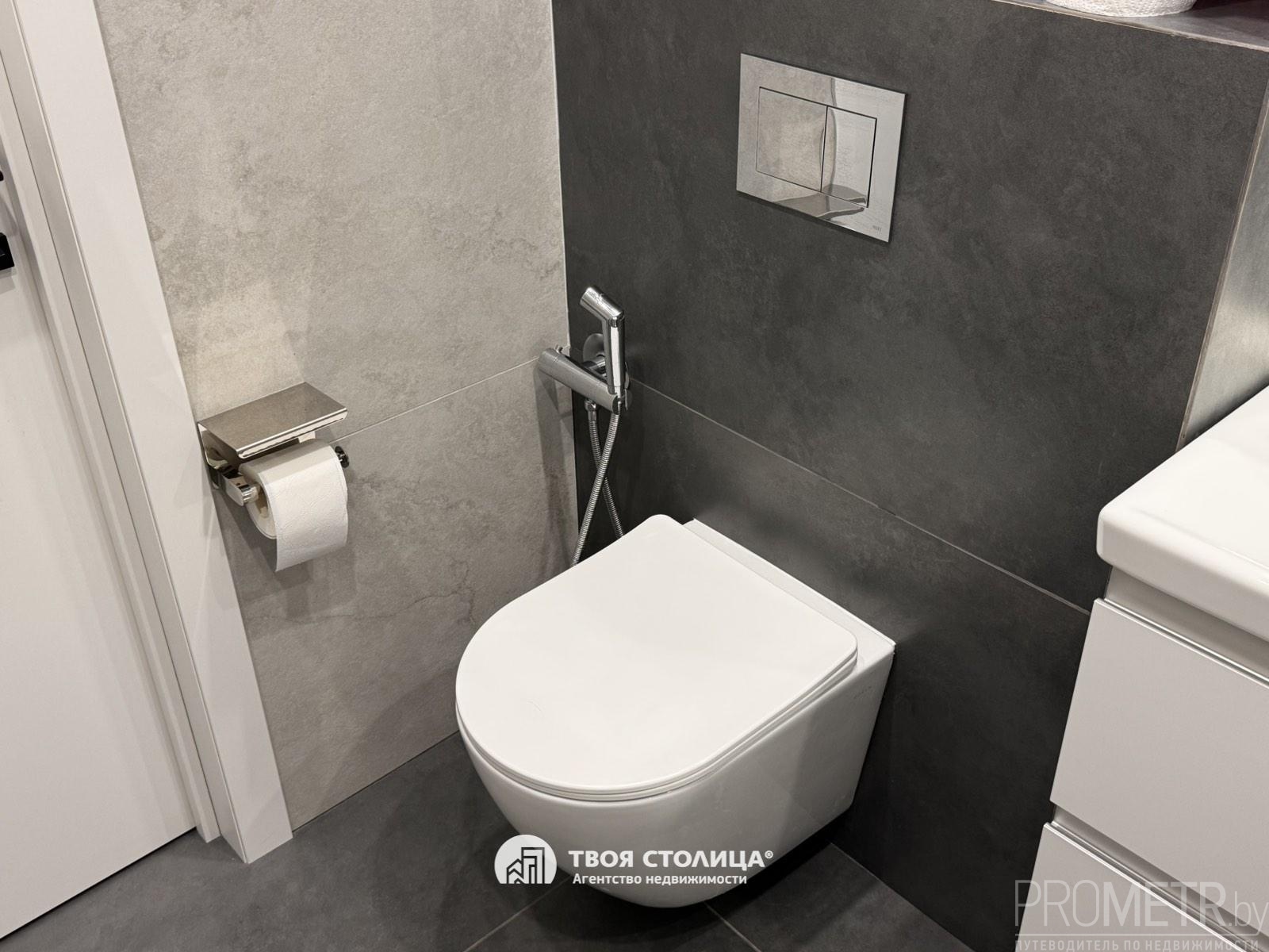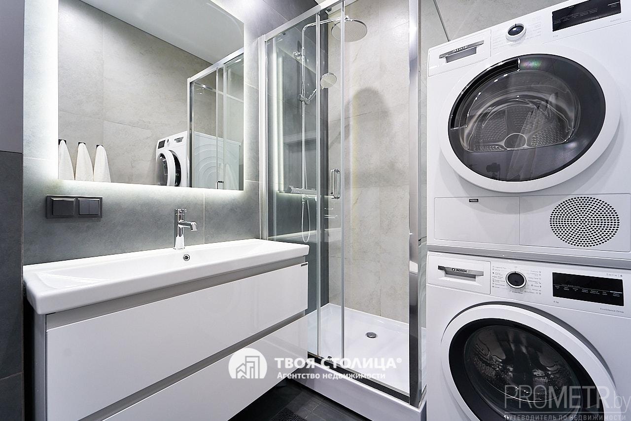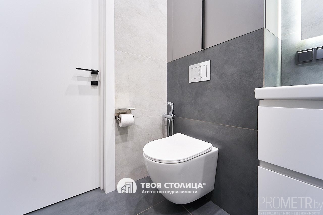 Совмещенный санузел облицован современной плиткой, одна стена обогревается, полотенца и ваш любимый халат всегда будут сухими и теплыми!