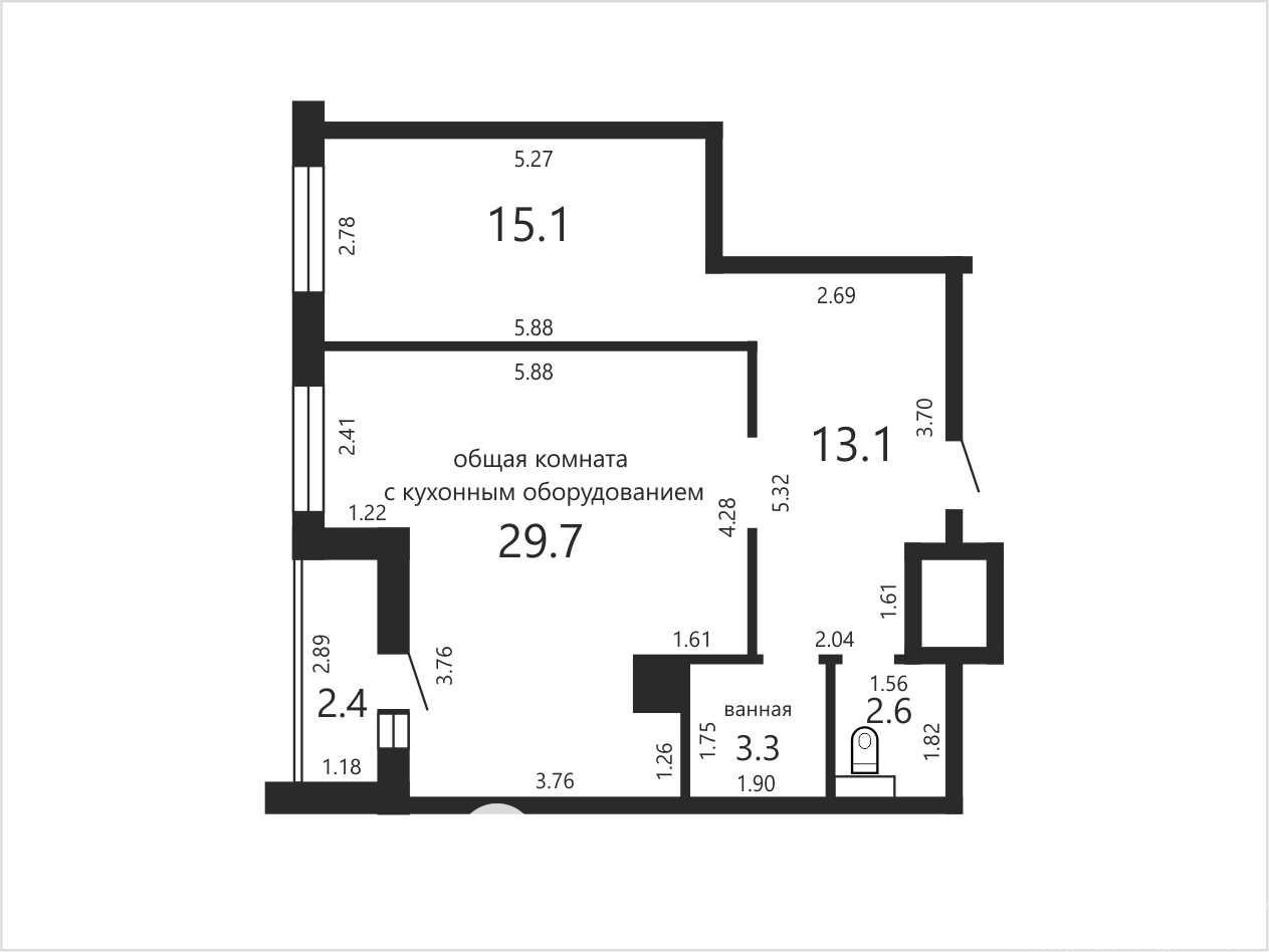 Просторная, светлая квартира в доме 2015 года постройки. Общая площадь по СНБ 66.2 м кв. Высота помещений 2.73 метра. Квартира ждёт Ваших дизайнерских решений.