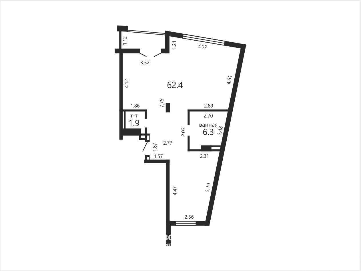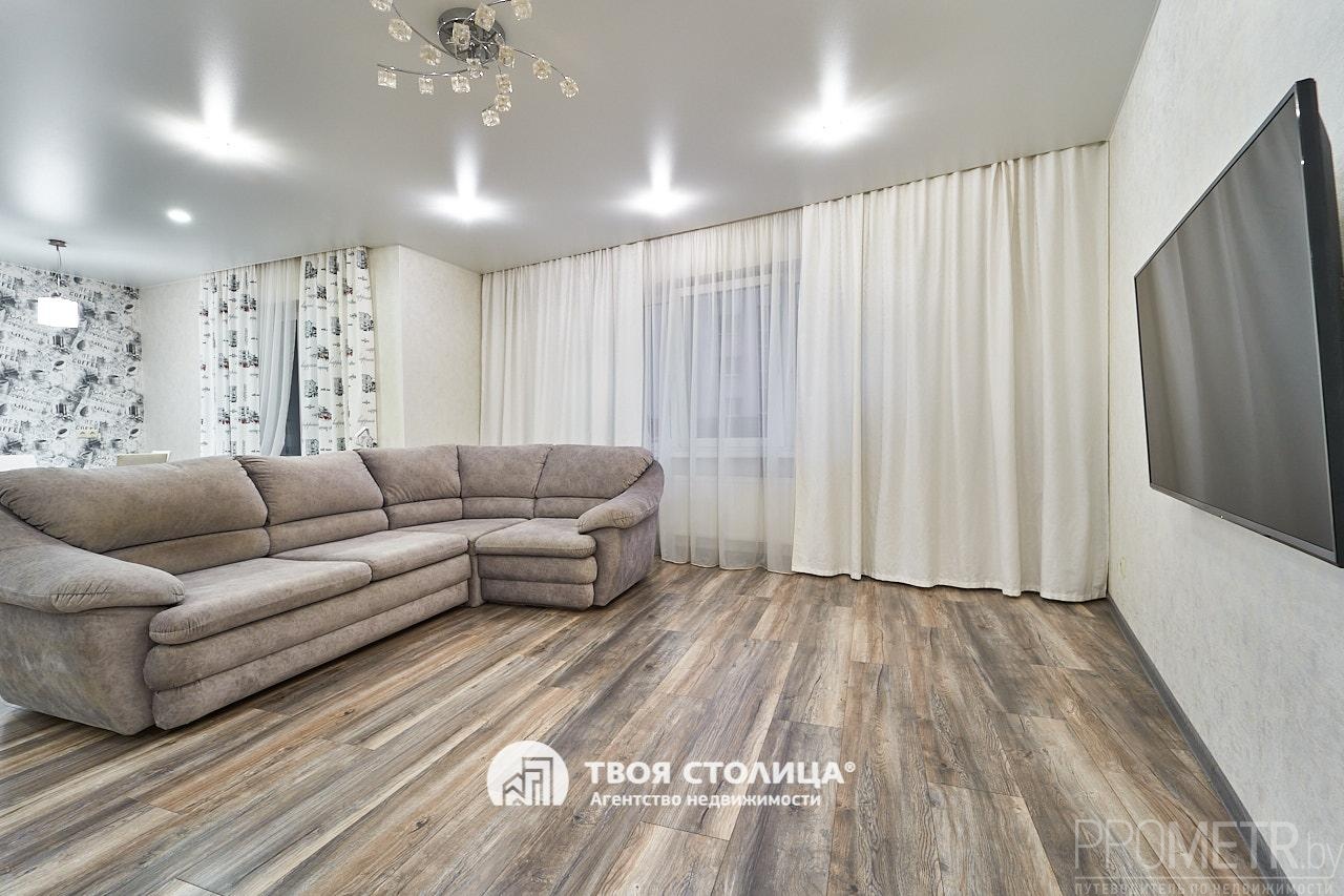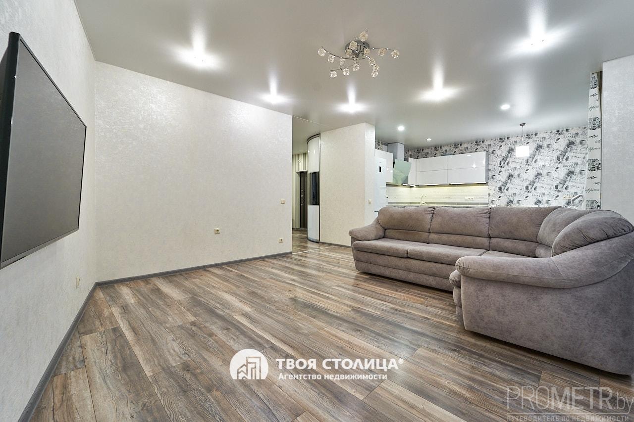 Площадь по СНБ -72,9 м². Общая площадь 70,6 м²; 62,4 жилая — м², высота потолков – 2,74 м.