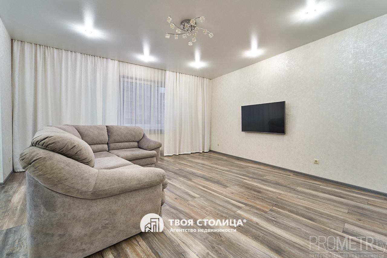 На окнах и панорамной лоджии установлены стеклопакеты. Потолок натяжной, с грамотно организованными зонами освещения.