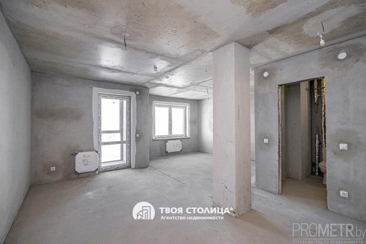 Разведена электрика и сантехнические трубы. Лоджия с остеклением в пол.