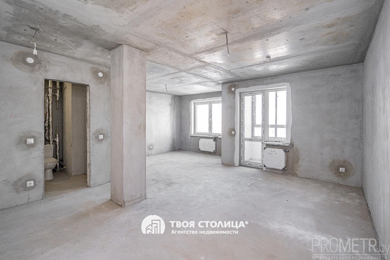 Квартира свободной планировки. Площадь квартиры по СНБ 40 кв. м. Общая площадь составляет 38.2 кв.м, жилая площадь – 30.6 кв.м.