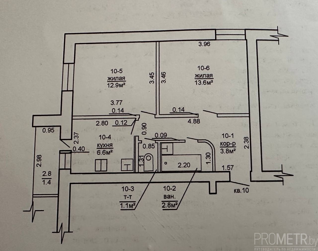 Площадь: 44.20 / 26.70 / 6.60 м2