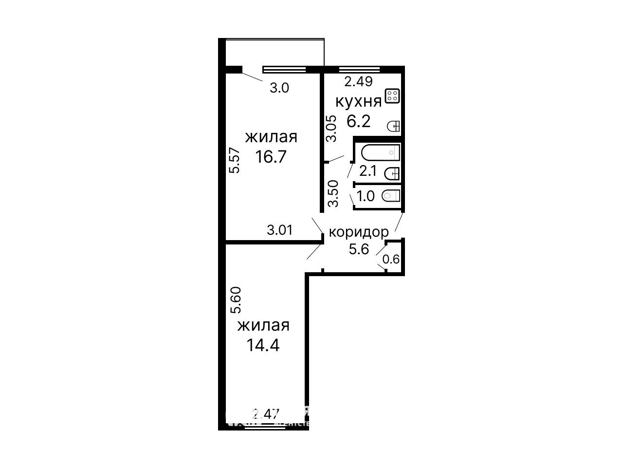 Панельный дом 1967 года постройки, 3-й этаж 5-ти этажного дома. Удобная планировка: две изолированные комнаты на разные стороны дома, раздельный санузел. Общая площадь 46.6 кв.м.