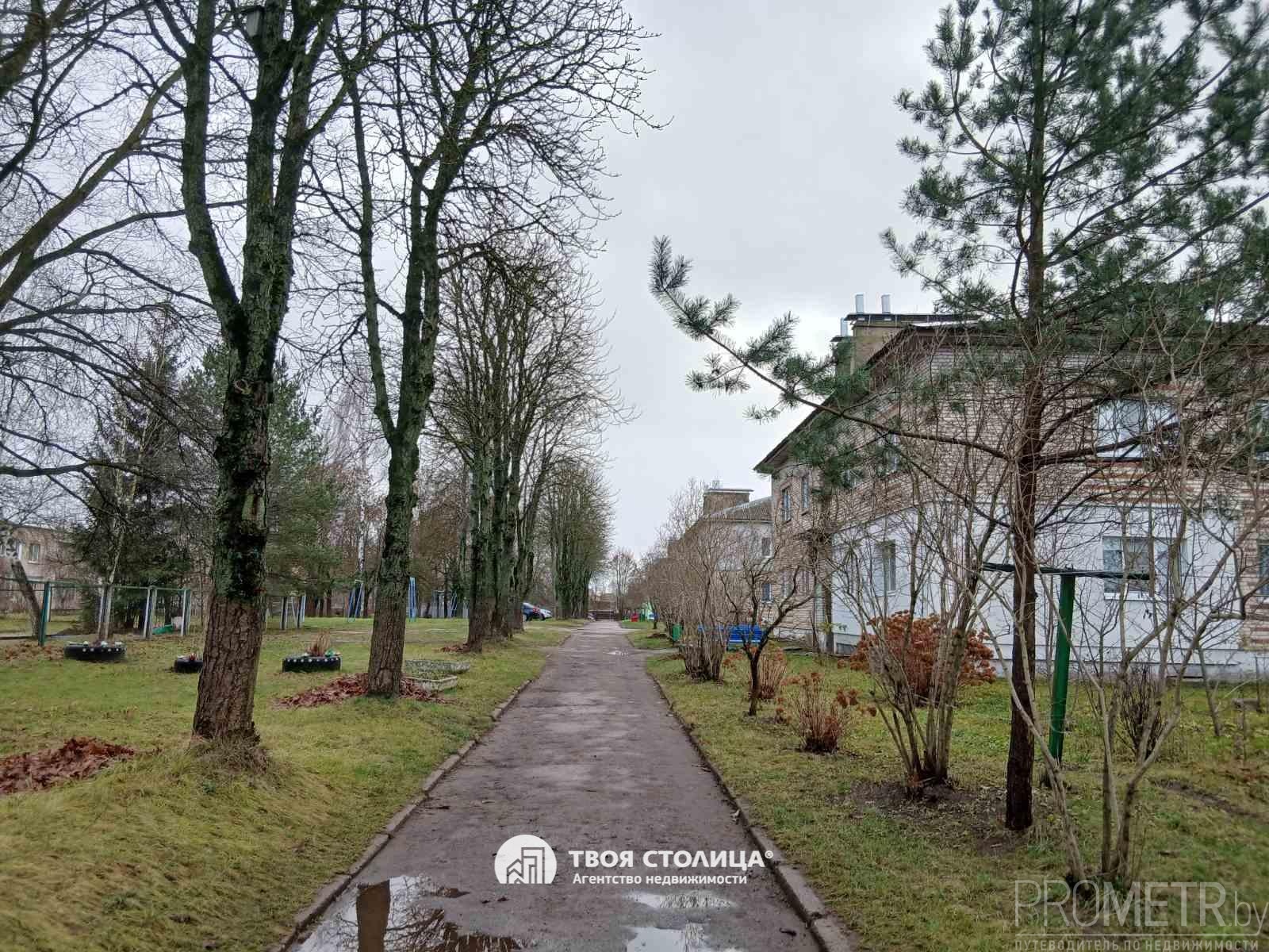 Спокойное тихое место, много зелени, отличное расположение: во дворе ясли-сад, рядом Михановичская школа, поликлиника, магазины «Евроопт», «Соседи», «Родный кут», отделение «Беларусбанка».