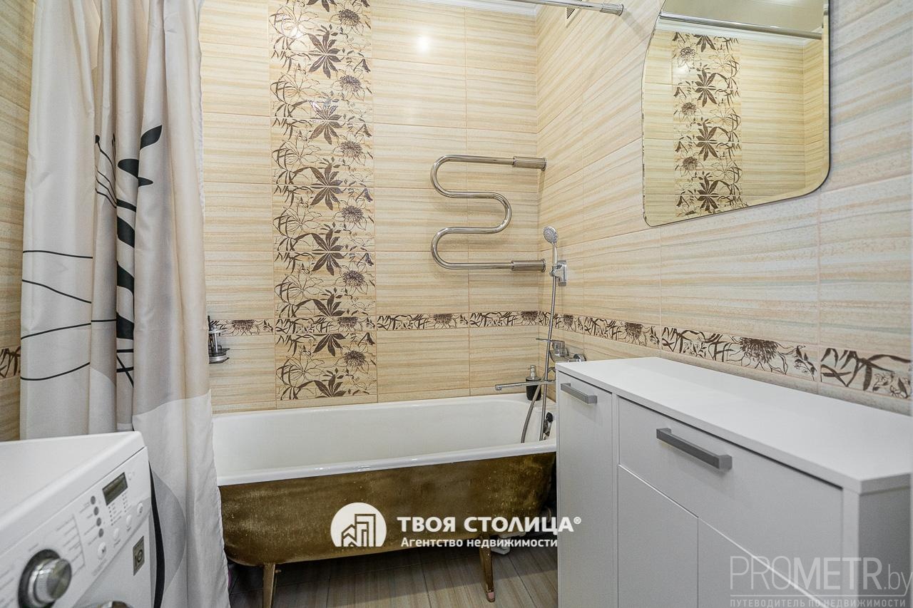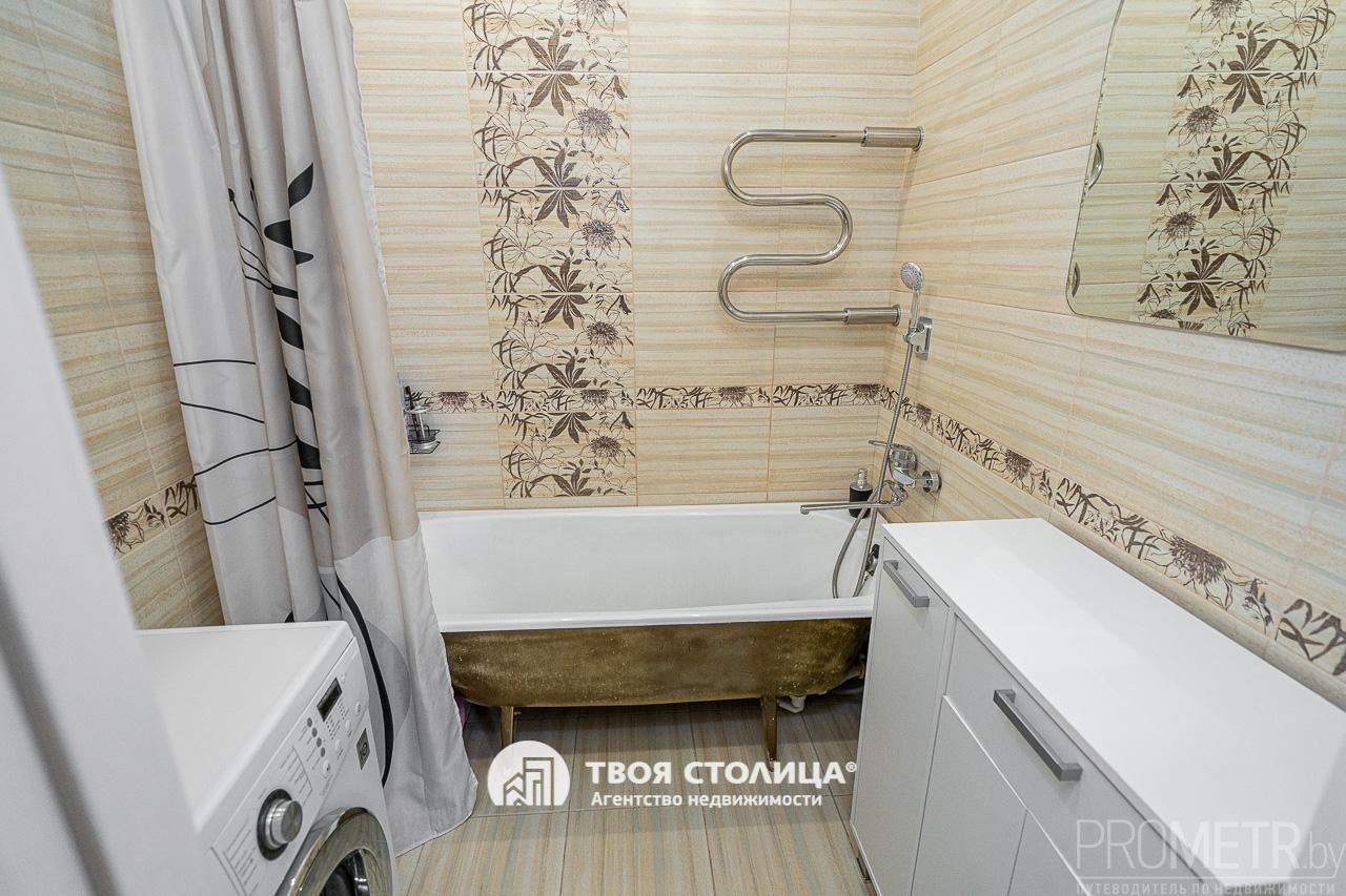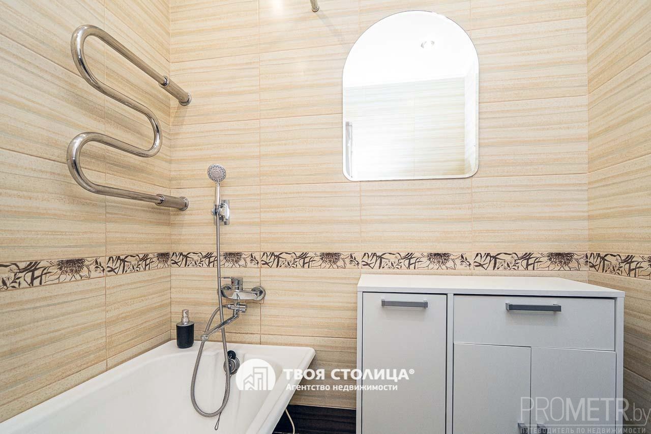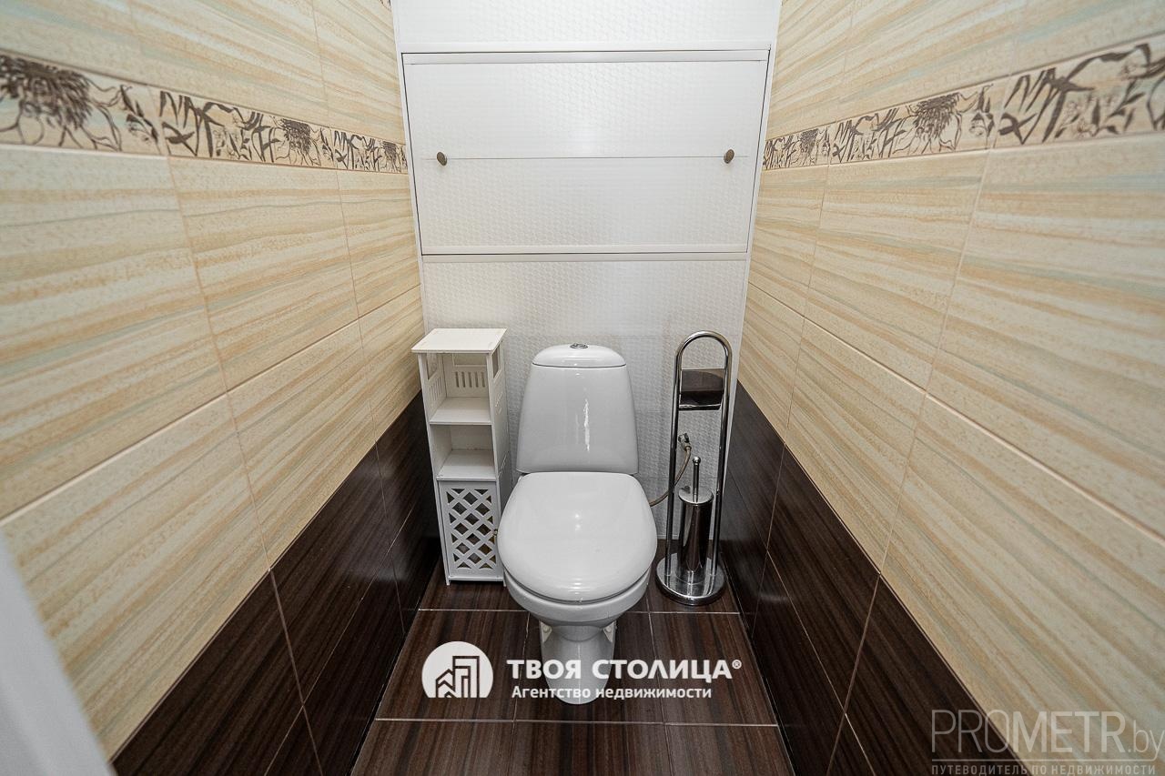 Санузел облицован плиткой современного образца, установлена необходимая сантехническая посуда и мебель.