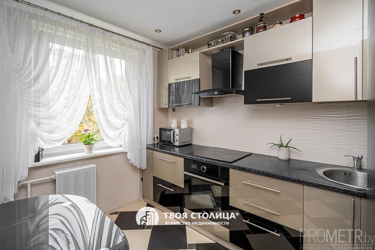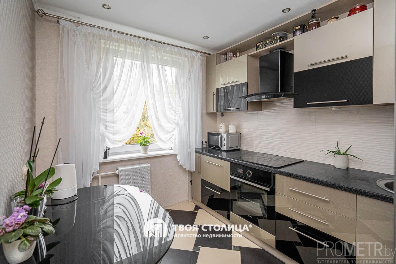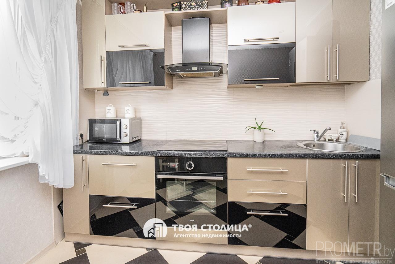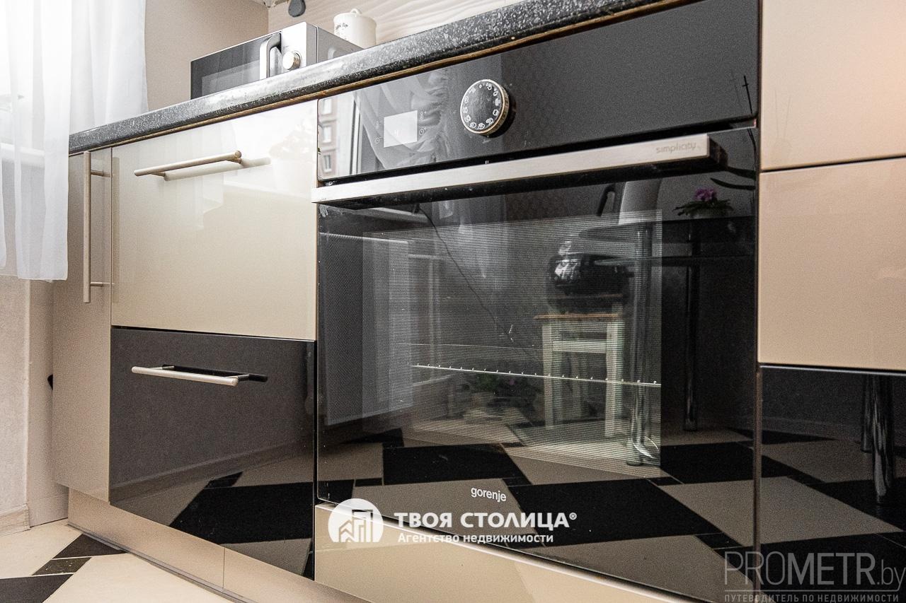 Выполнен качественный ремонт с использованием практичных материалов: ламинат в комнатах и керамическая плитка на кухне. Остается встроенная мебель, кухня, бытовая техника и холодильник.