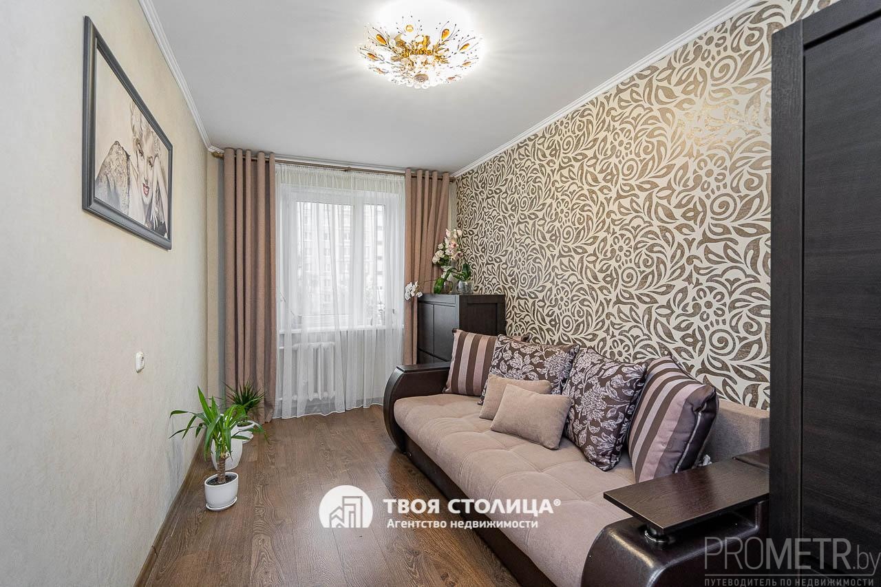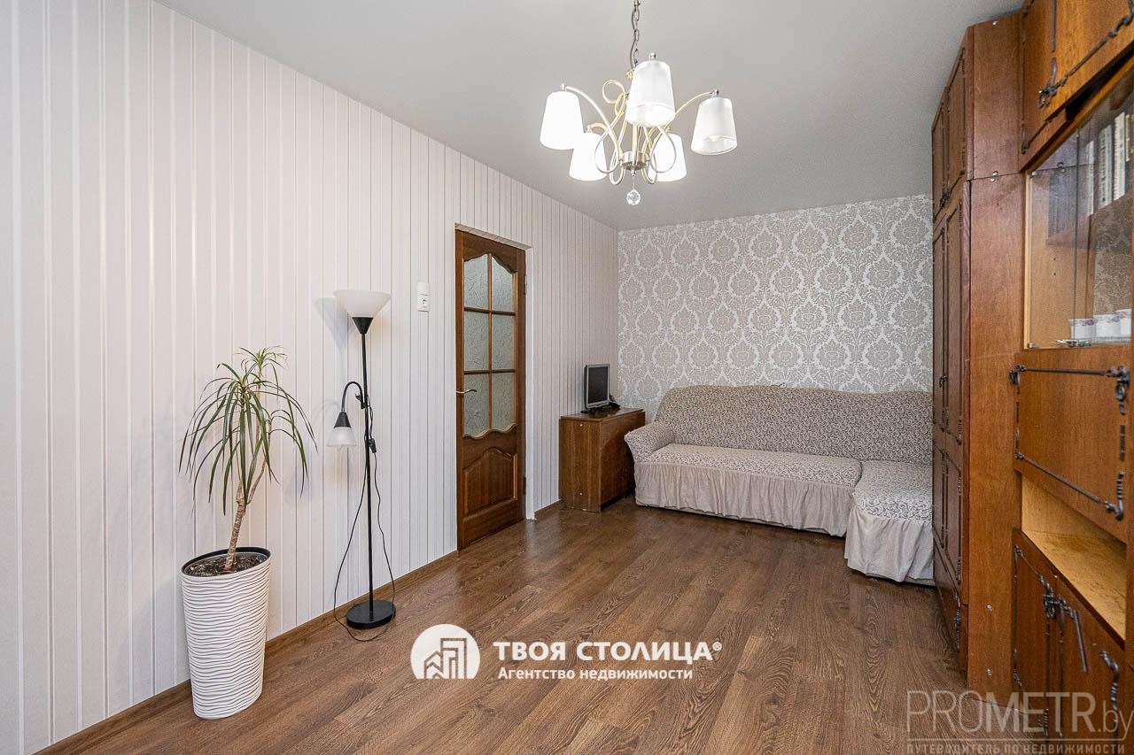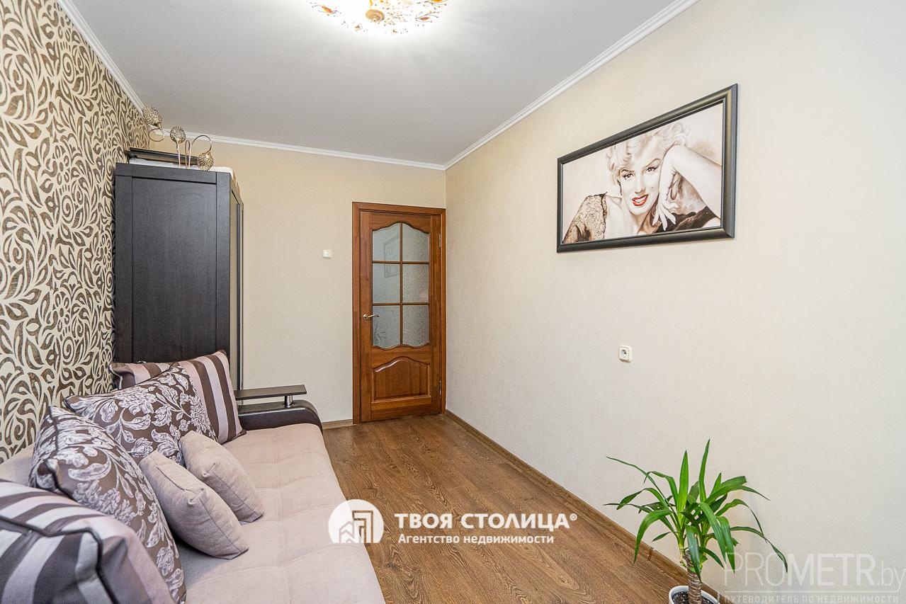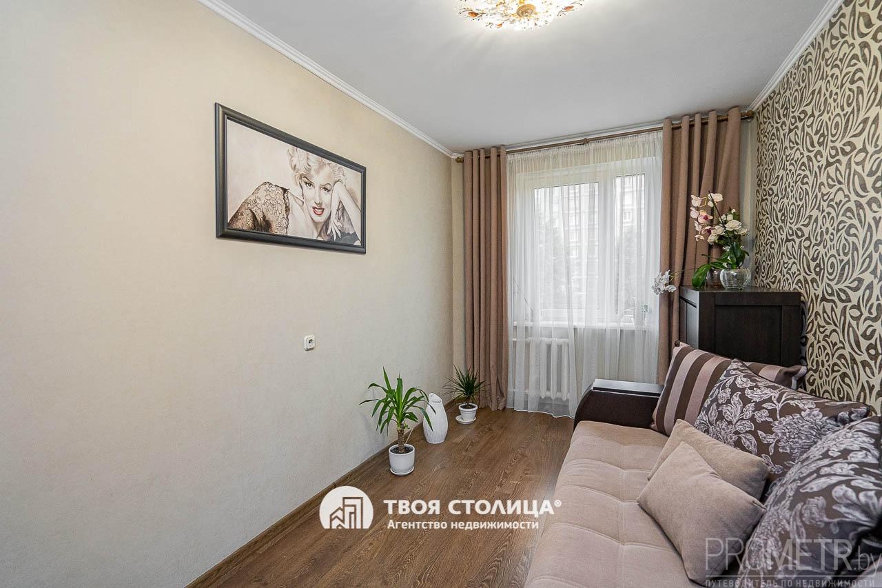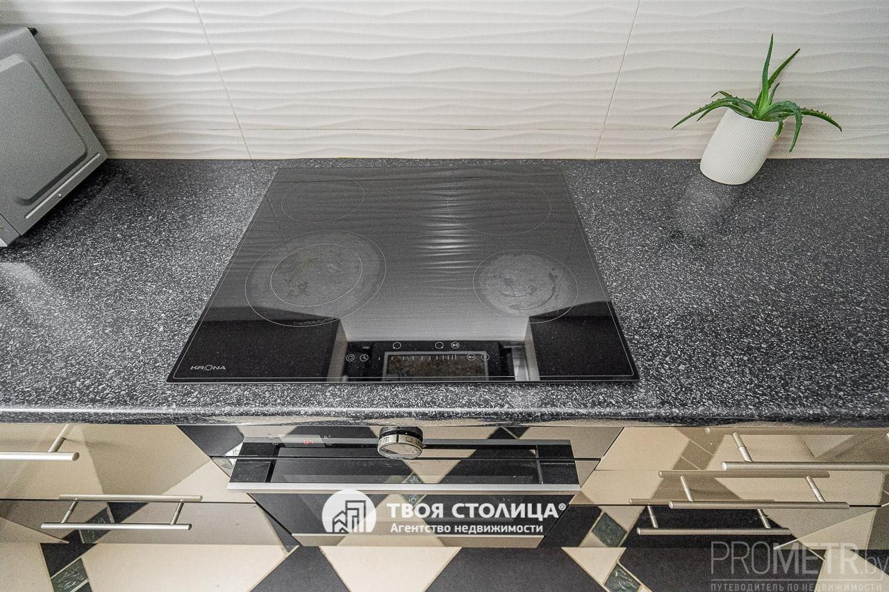 Выполнен качественный ремонт с использованием практичных материалов: ламинат в комнатах и керамическая плитка на кухне. Остается встроенная мебель, кухня, бытовая техника и холодильник.