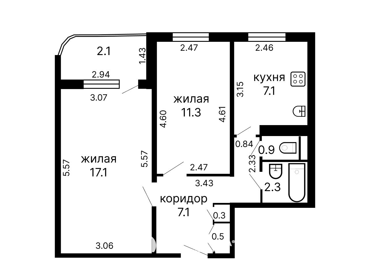 Двухкамерные окна Salamander обеспечивают тепло- и шумоизоляцию. Балкон застеклен, что увеличивает полезное пространство и комфорт в любое время года. Раздельный санузел добавляет удобства для всей семьи.