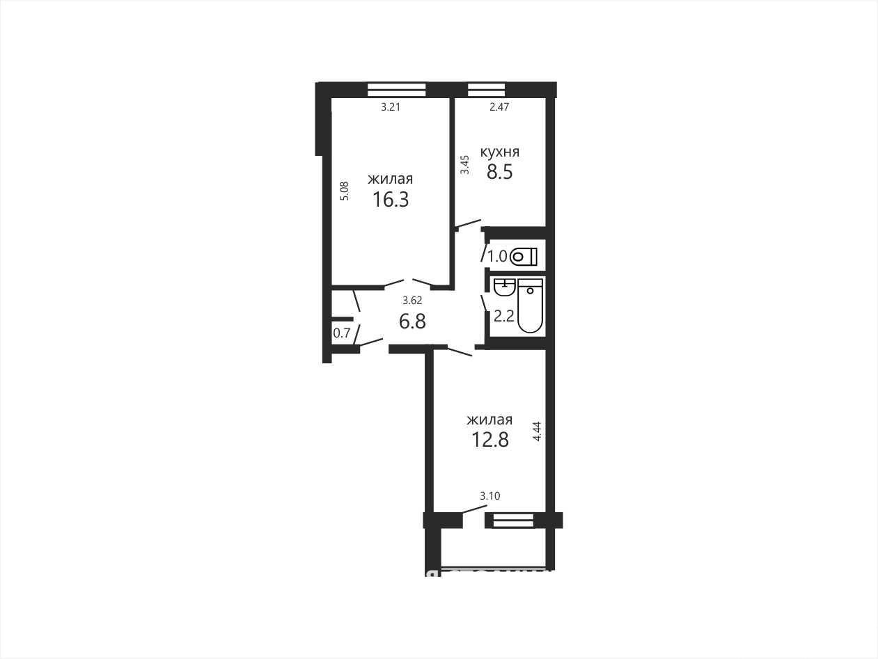 – Общая площадь – 49,3 м² (по СНБ - 51,6 м²), жилая – 30,1 м², просторная кухня – 8,5 м²;