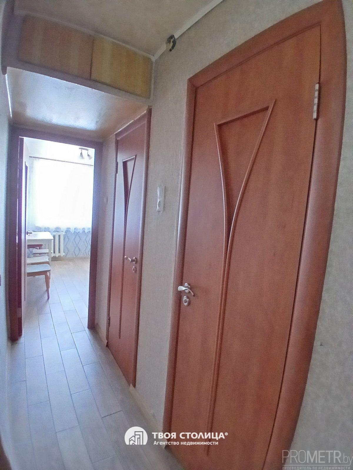 – Напольное покрытие: плитка в кухне, коридоре, санузле, ламинат в комнатах.