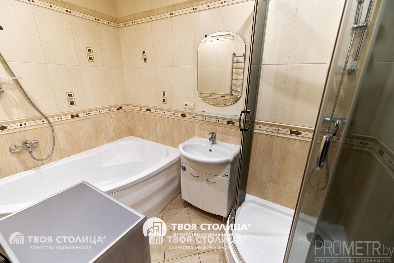 В просторной ванной комнате — душевая кабина и ванна. Установлены приборы учёта воды. Продуманы места хранения, включая встроенный шкаф в прихожей. Межкомнатные двери — МДФ, входная дверь — металлическая. Проведены оптоволокно, телефон, домофон.
