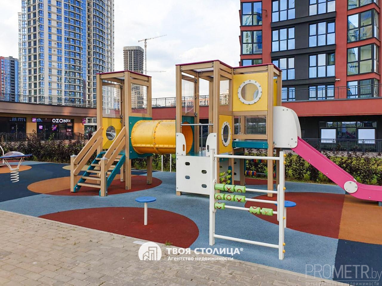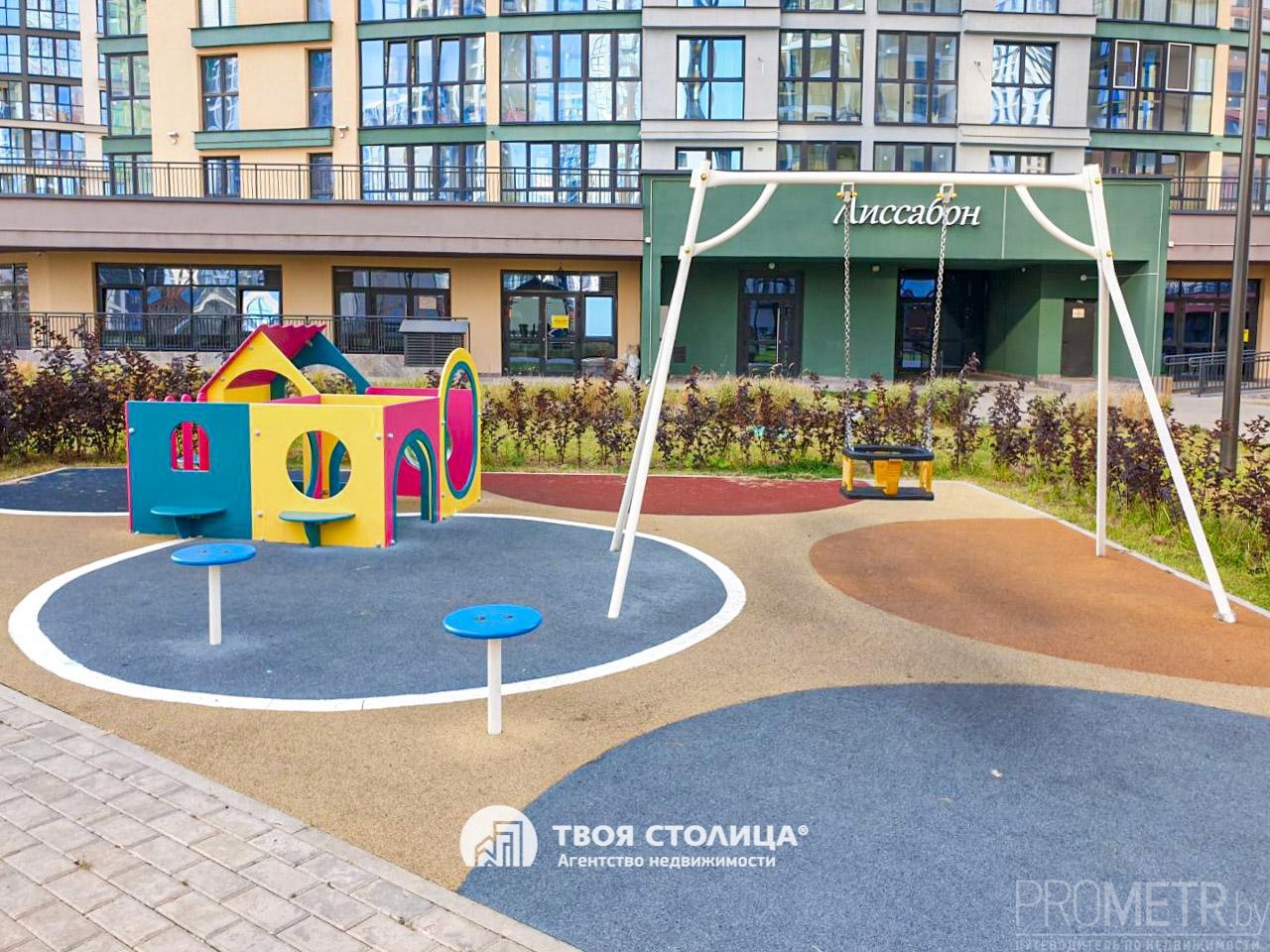 Возле дома обустроена современная детская площадка и много парковочных мест.