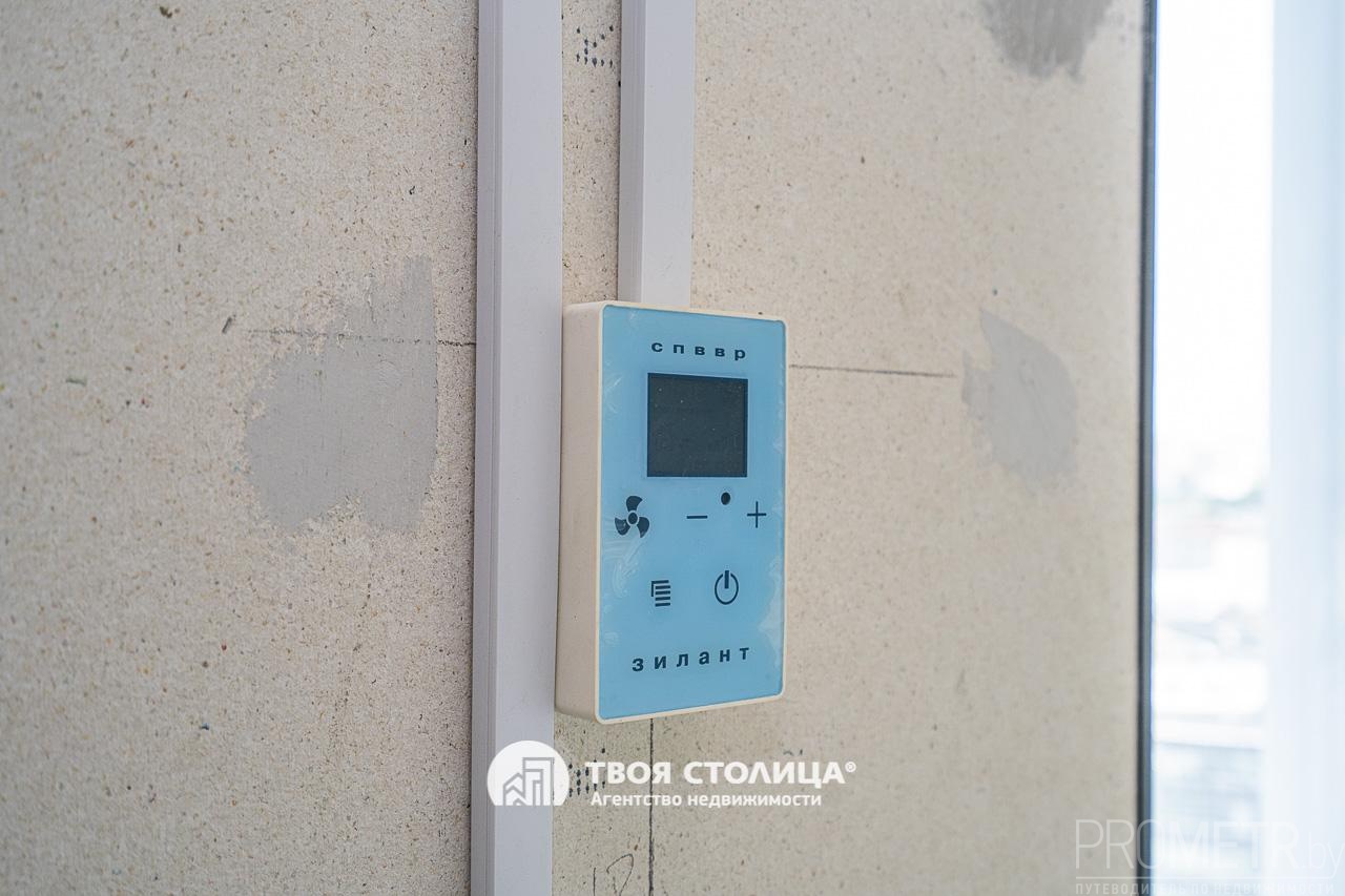 Квартира оборудована электрической приточно-вытяжной системой рекуперации , которая фильтрует и подаёт свежий воздух в квартиру, одновременно удаляя загрязнённый.