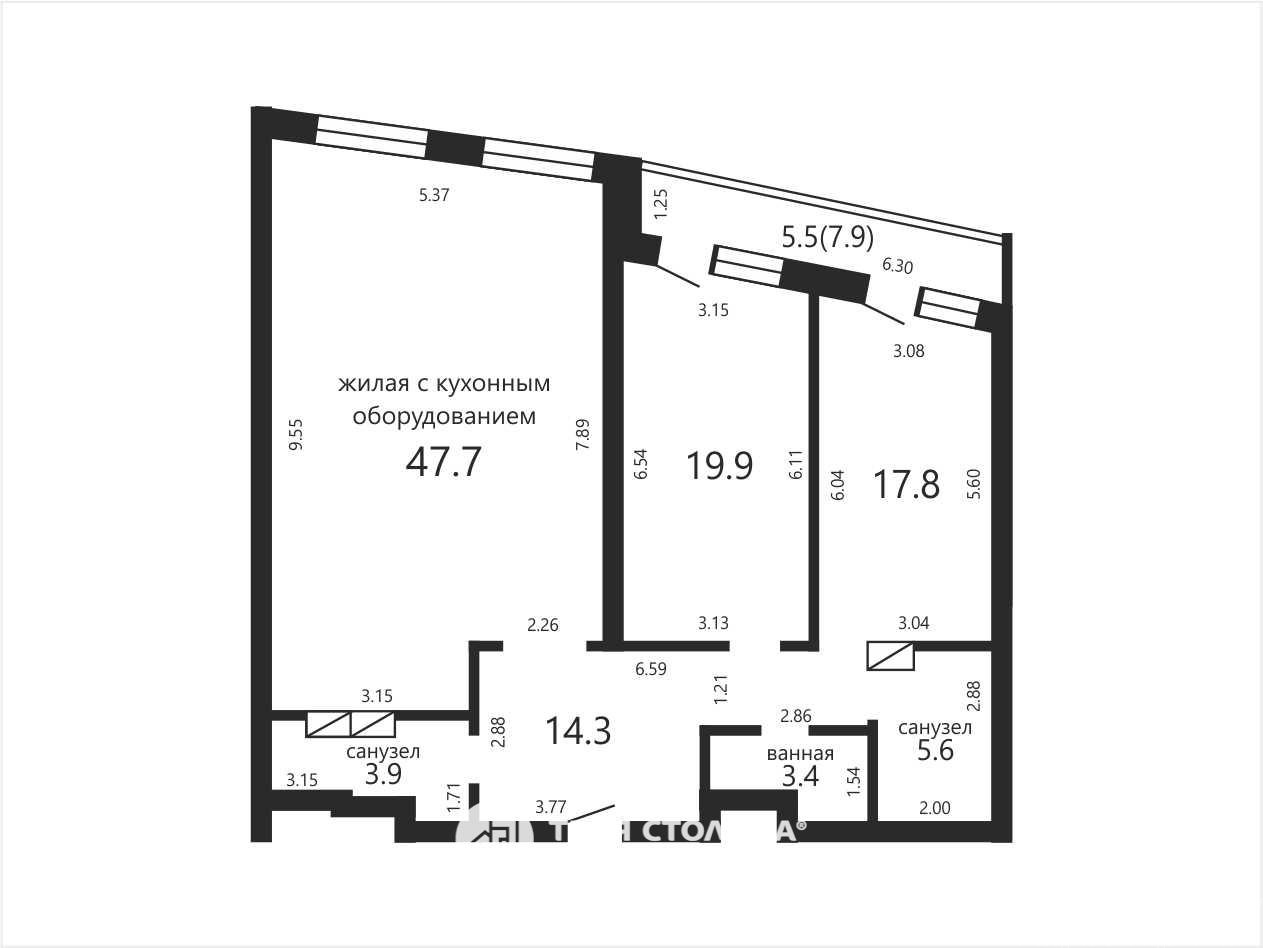 площадь по СНБ - 118,1 м3, общая - 112,6 м3, жилая - 85,4 м?, высота потолков - 2,87 м.