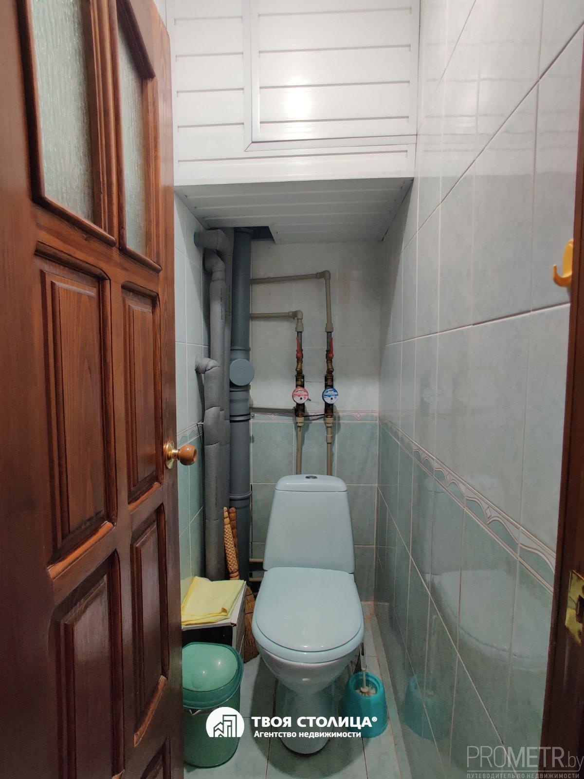 Аккуратный сан узел– облицован плиткой, раздельный.