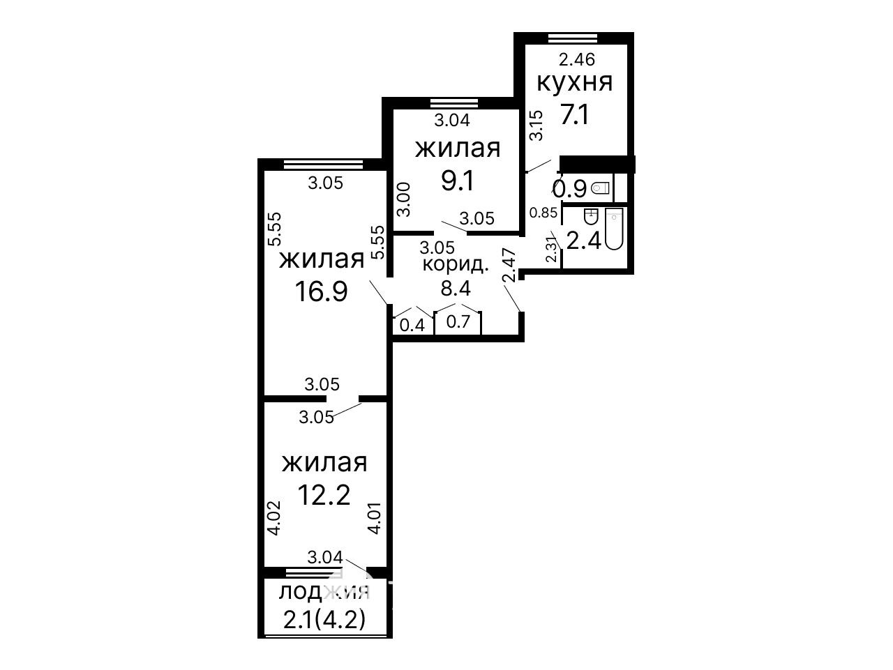 Трехкомнатная квартира общей площадью 58.1 кв.м, расположена на 2-м этаже 9-этажного панельного дома 1984 года постройки. Дом после капитального ремонта, заменены лифты, сантехнические и газовые трубы.