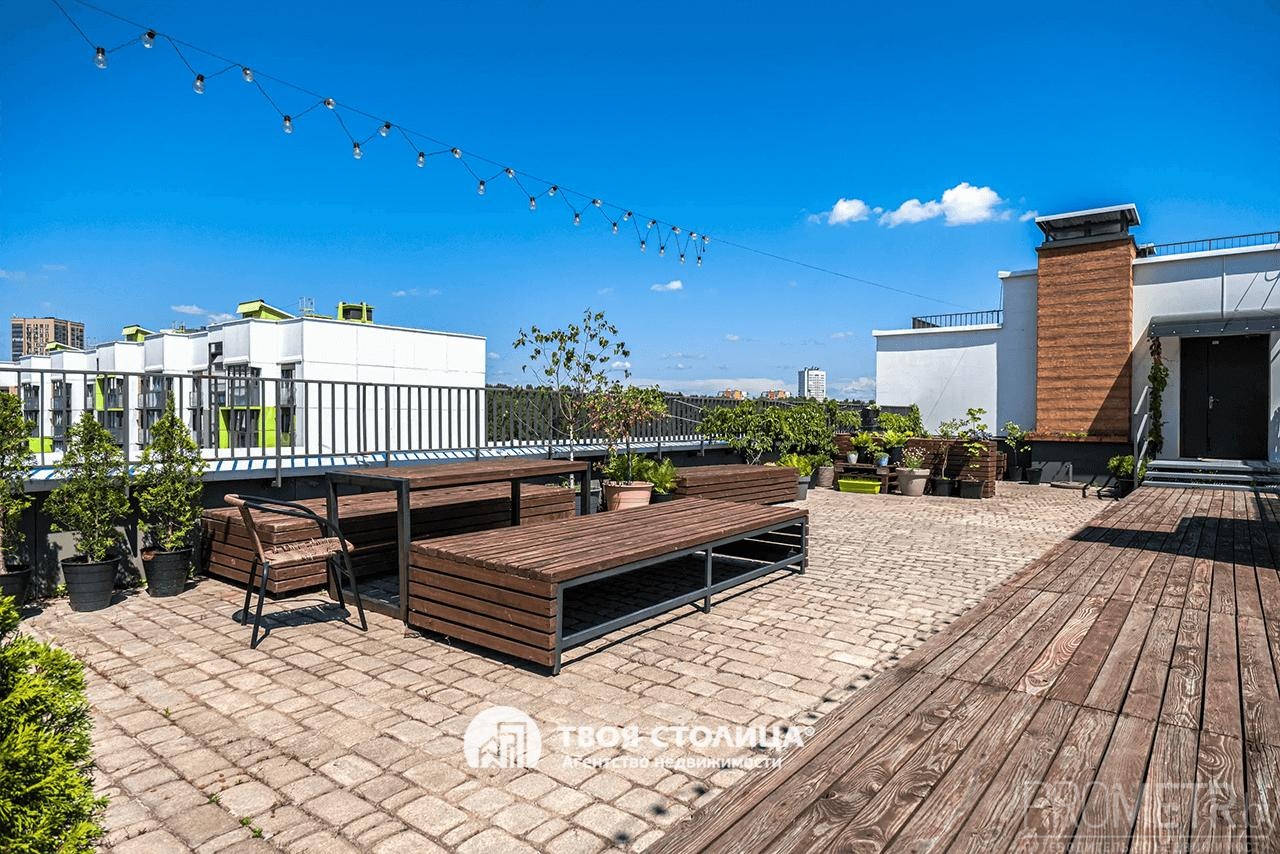 Главная изюминка — терраса на крыше, где можно устраивать завтраки на свежем воздухе или вечера с друзьями под закат.